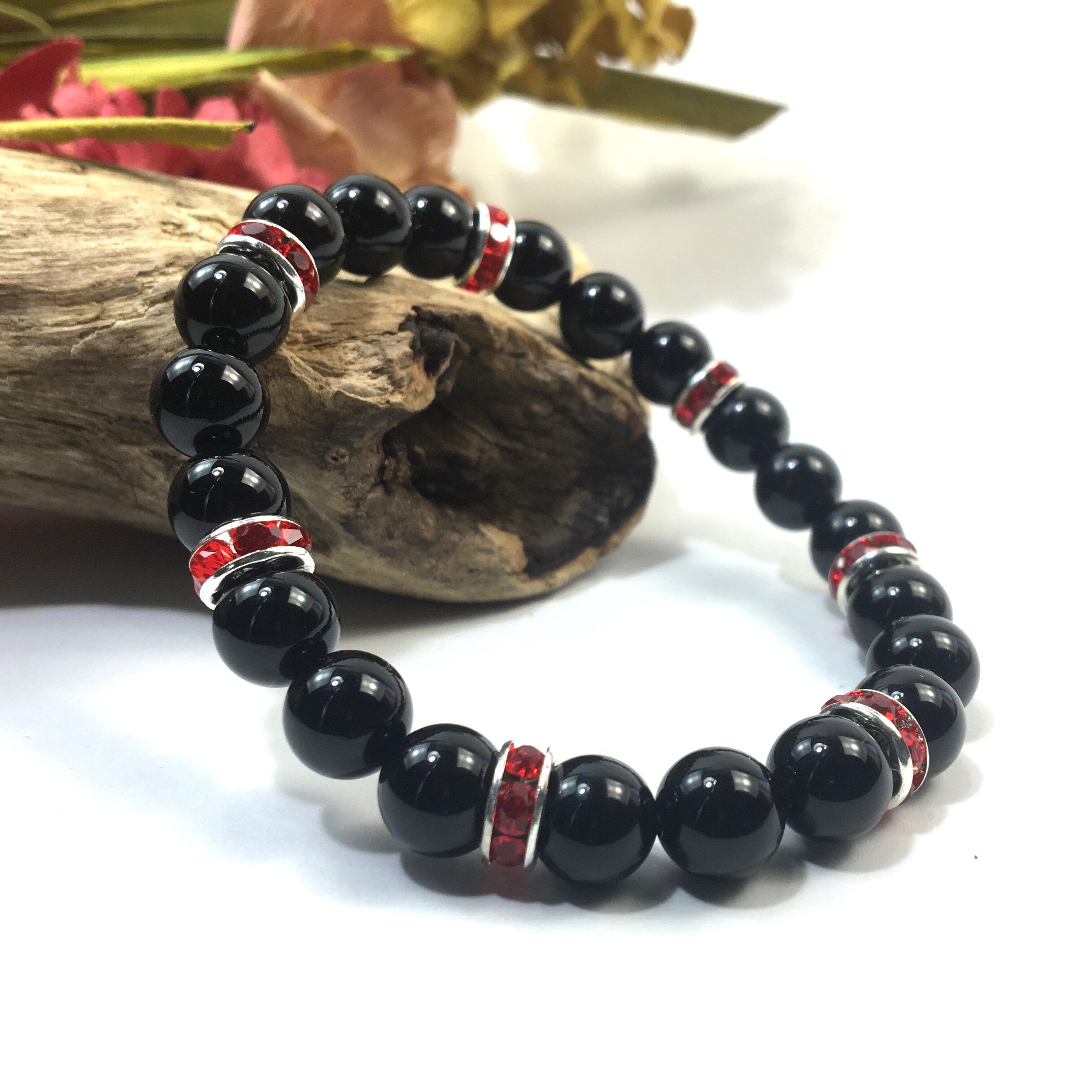 パワーストーン ブレスレット オニキス 天然石ブレス (レッド)レディース 女性 数珠ブレス 開運 プレゼント ギフト