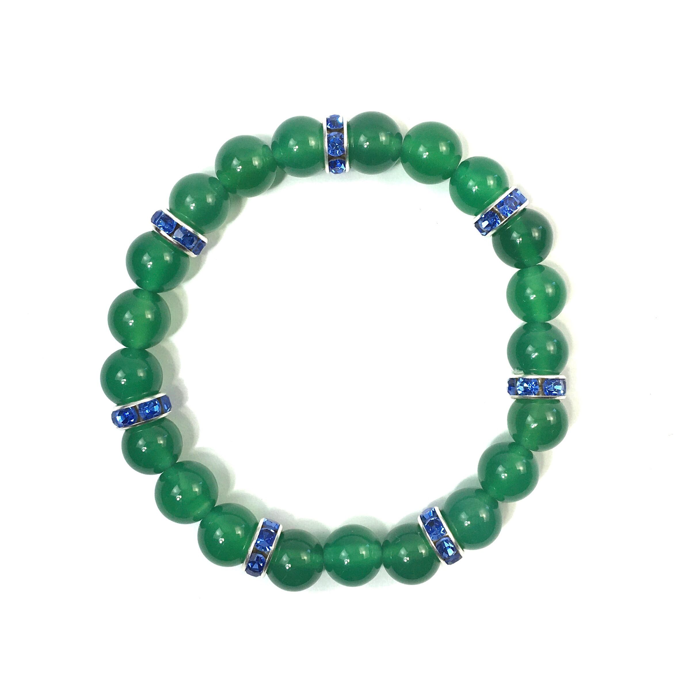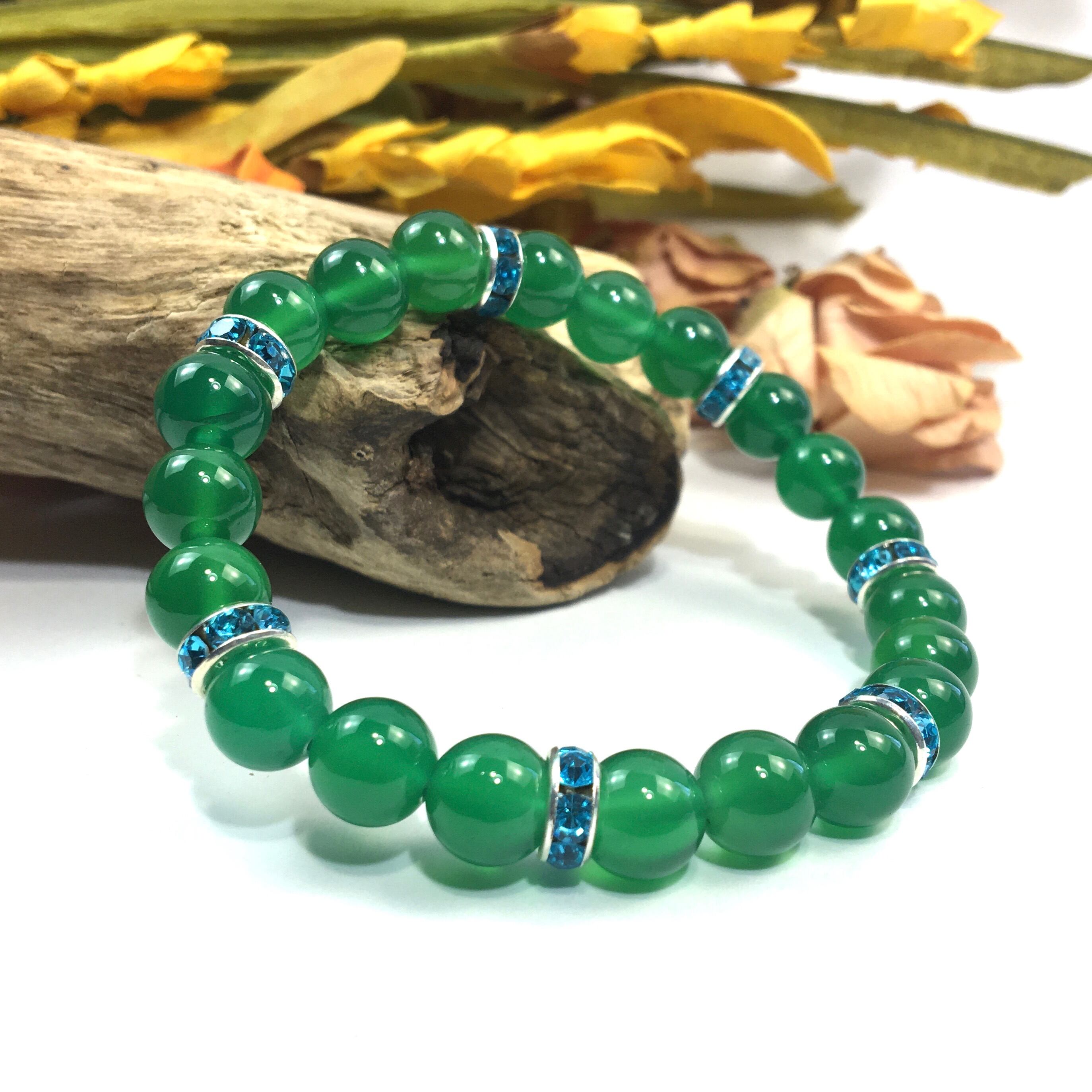 こちらは、8mm玉の緑瑪瑙を使ったパワーストーンブレスレットです。シンプルなデザインでどんなコーディネートにも合わせやすいデザインに仕上げています。サイズは内周約15cmです。気になる方は是非この機会にどうぞ。