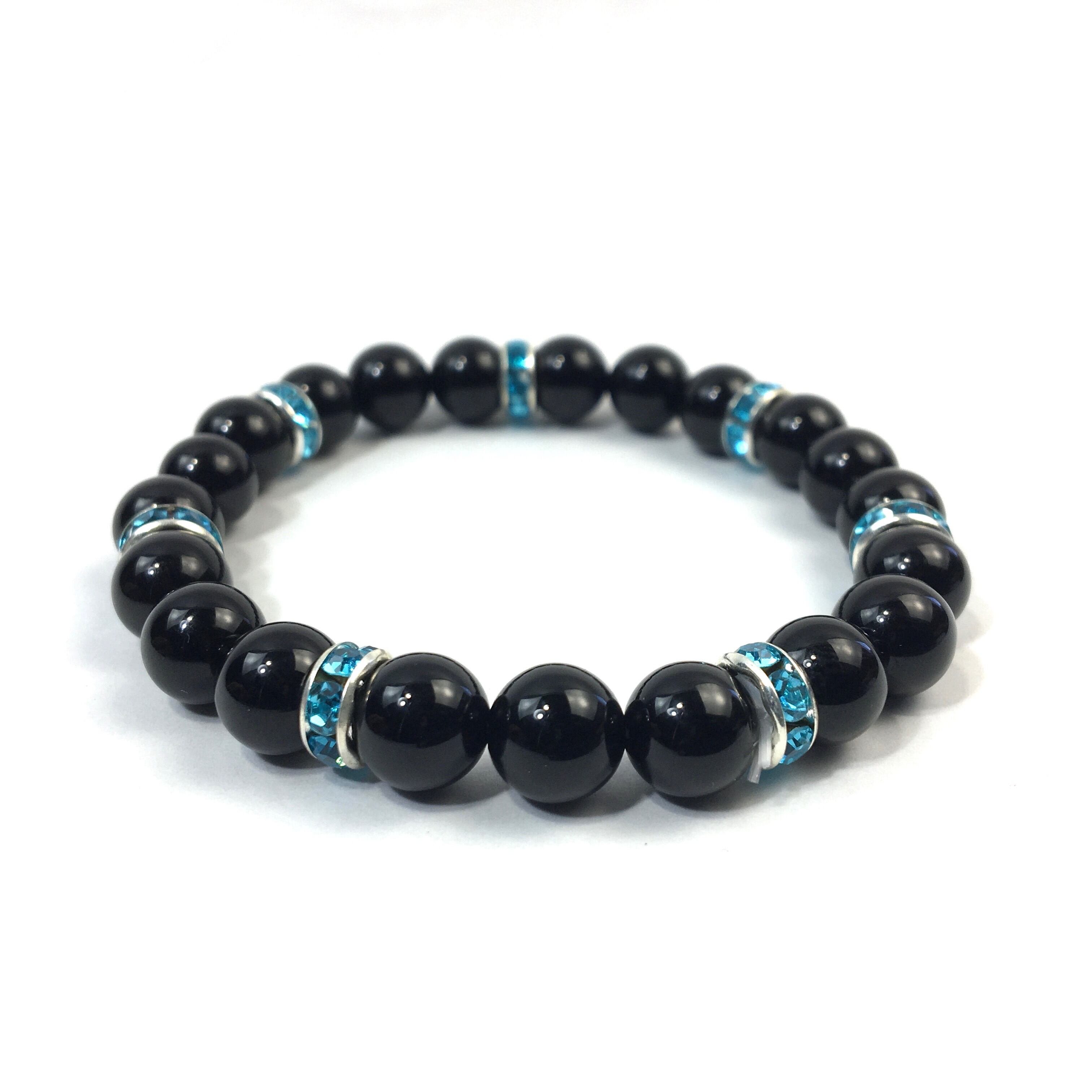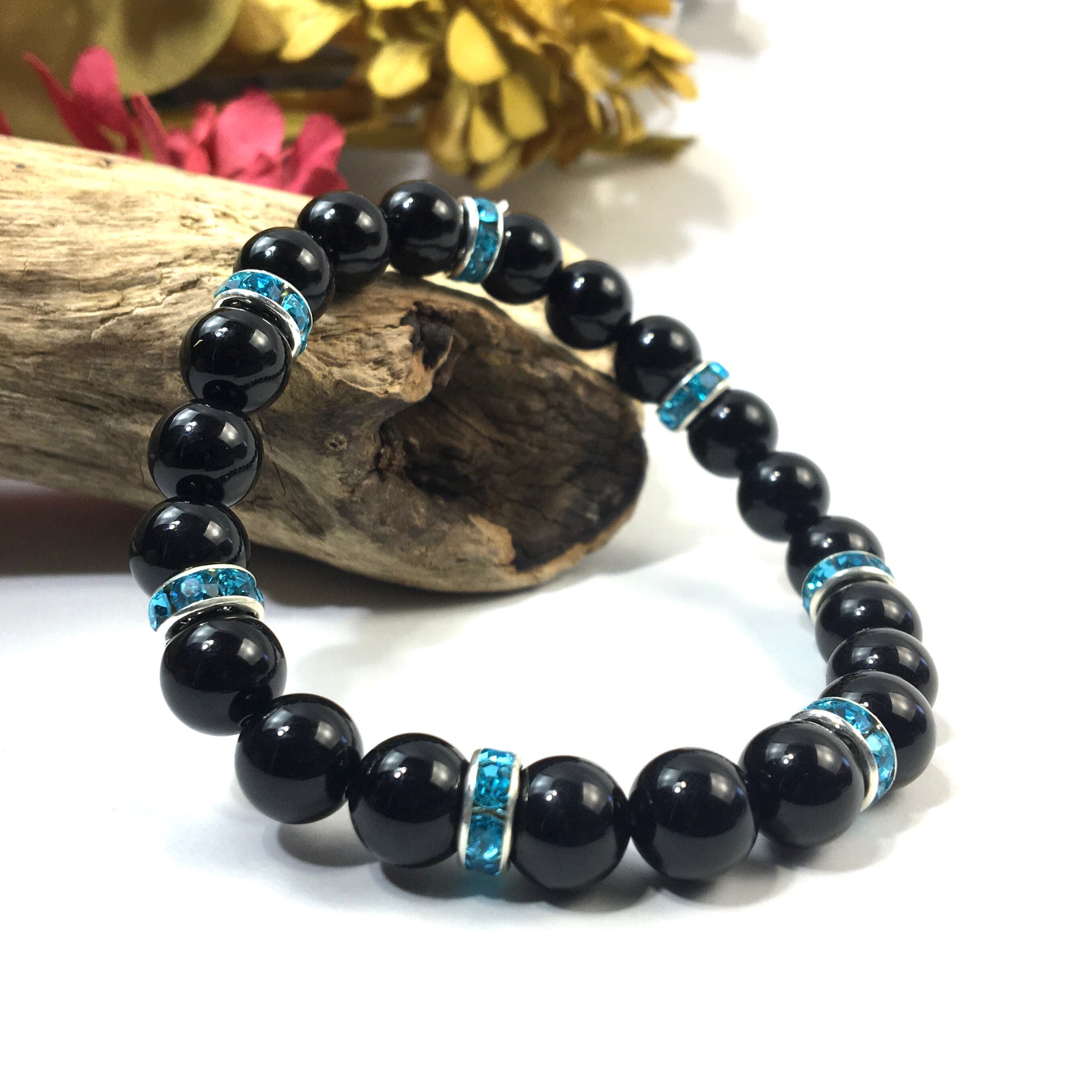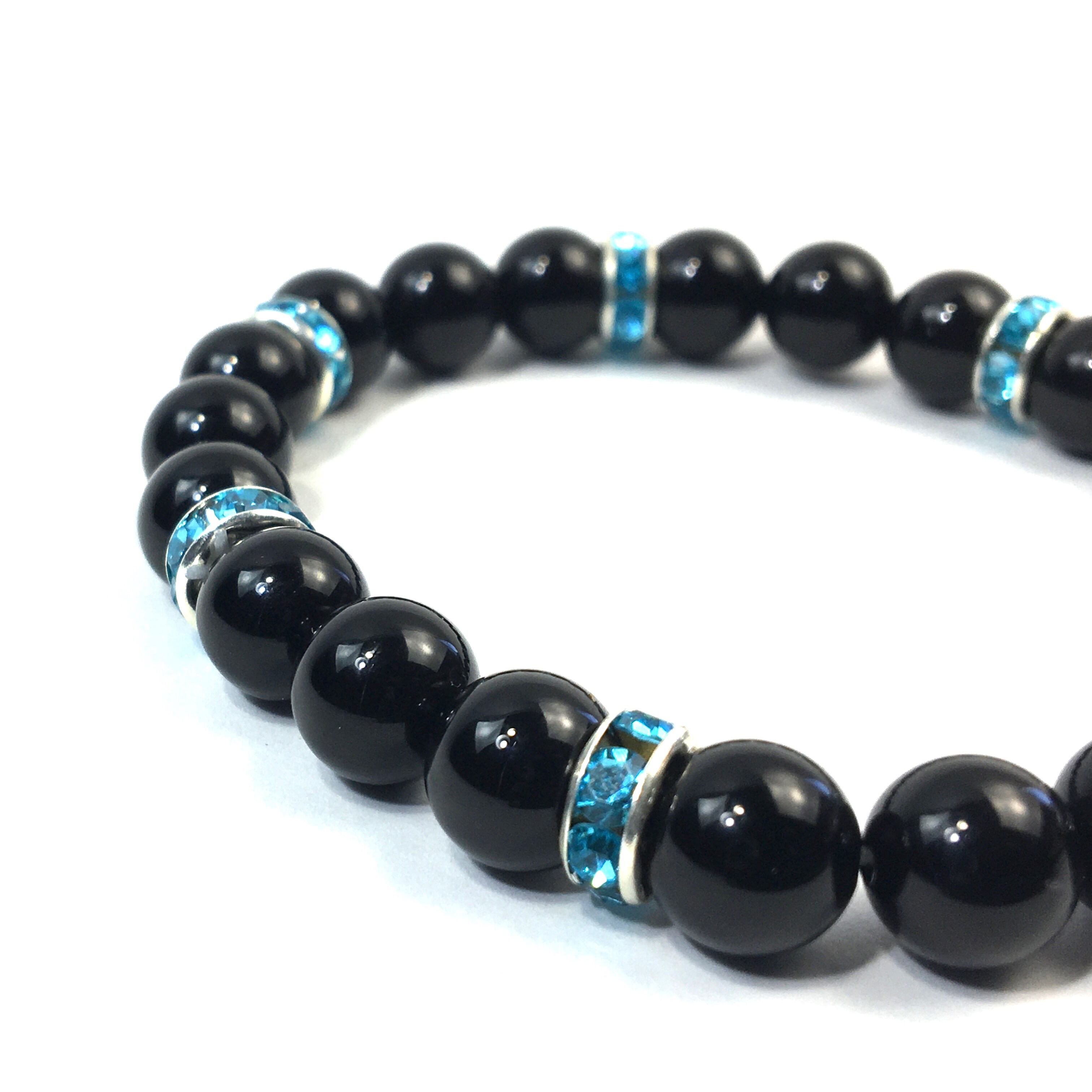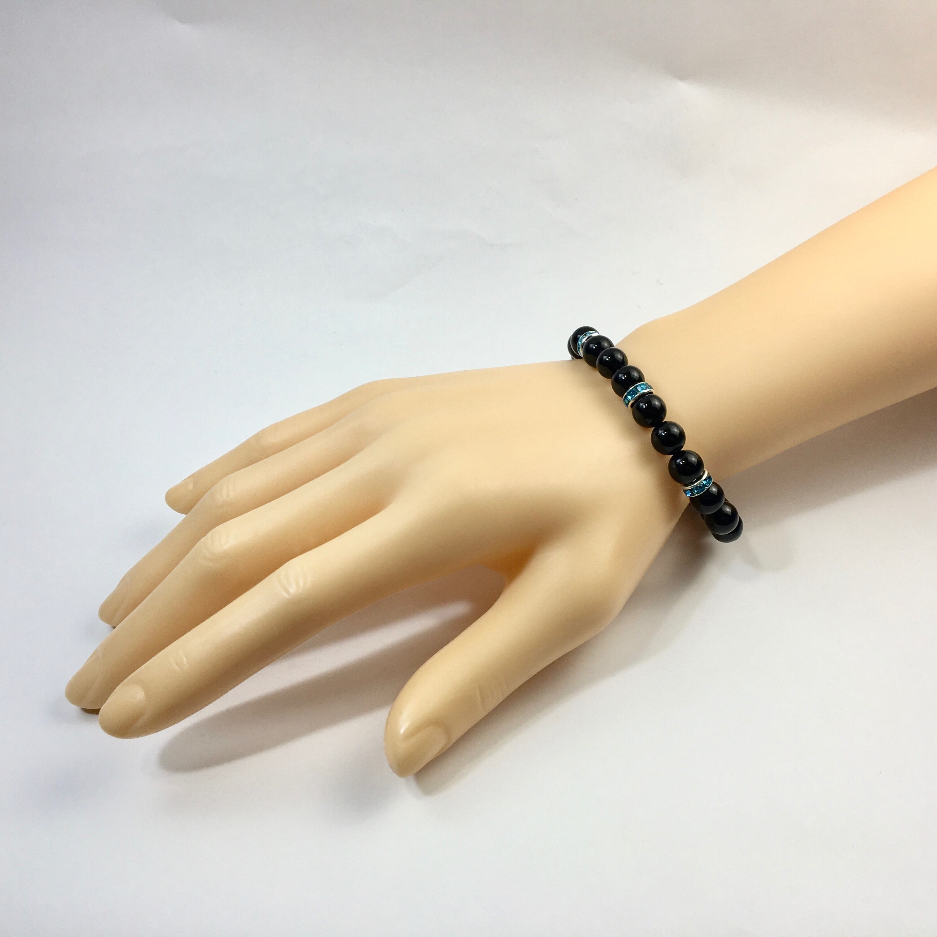 パワーストーン ブレスレット オニキス 天然石ブレス (ライトブルー)レディース 女性 数珠ブレス 開運 プレゼント ギフト