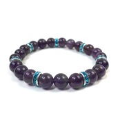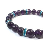 こちらは、8mm玉のアメジストを使ったパワーストーンブレスレットです。シンプルなデザインでどんなコーディネートにも合わせやすいデザインに仕上げています。サイズは内周約15cmです。気になる方は是非この機会にどうぞ。