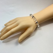 こちらは、8mm玉の水晶を使ったパワーストーンブレスレットです。シンプルなデザインでどんなコーディネートにも合わせやすいデザインに仕上げています。サイズは内周約15cmです。気になる方は是非この機会にどうぞ。