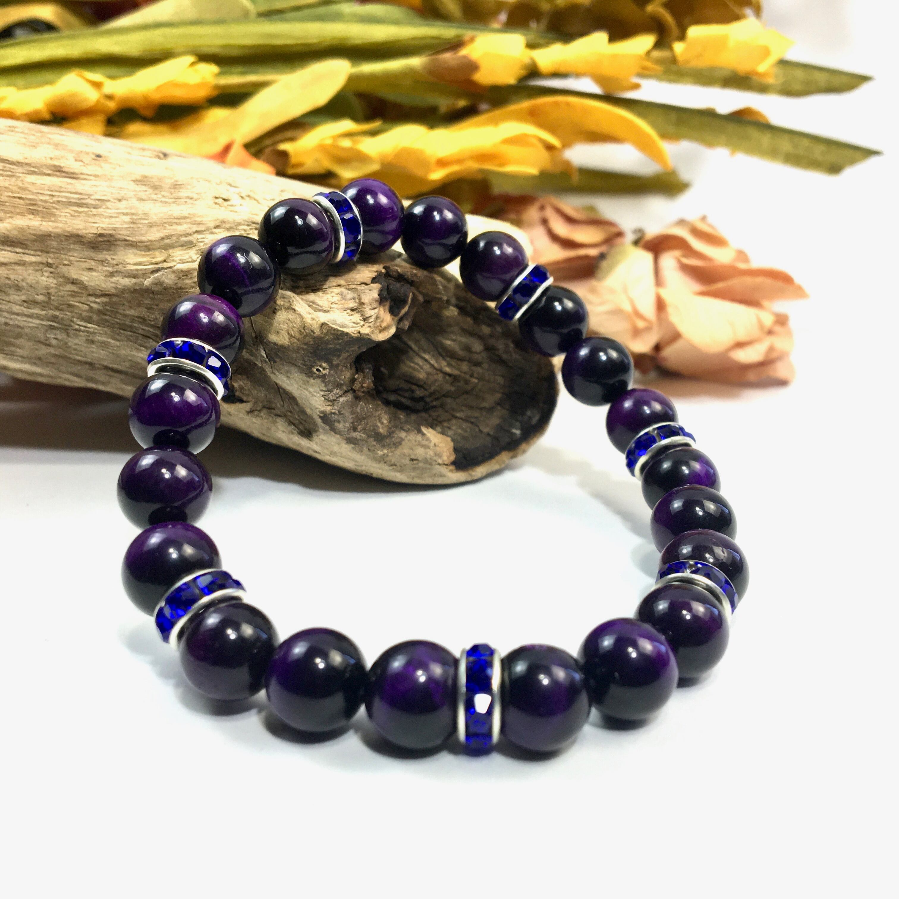 パワーストーン ブレスレット パープルタイガーアイ (ダークブルー)レディース 女性 数珠ブレス 開運 プレゼント ギフト