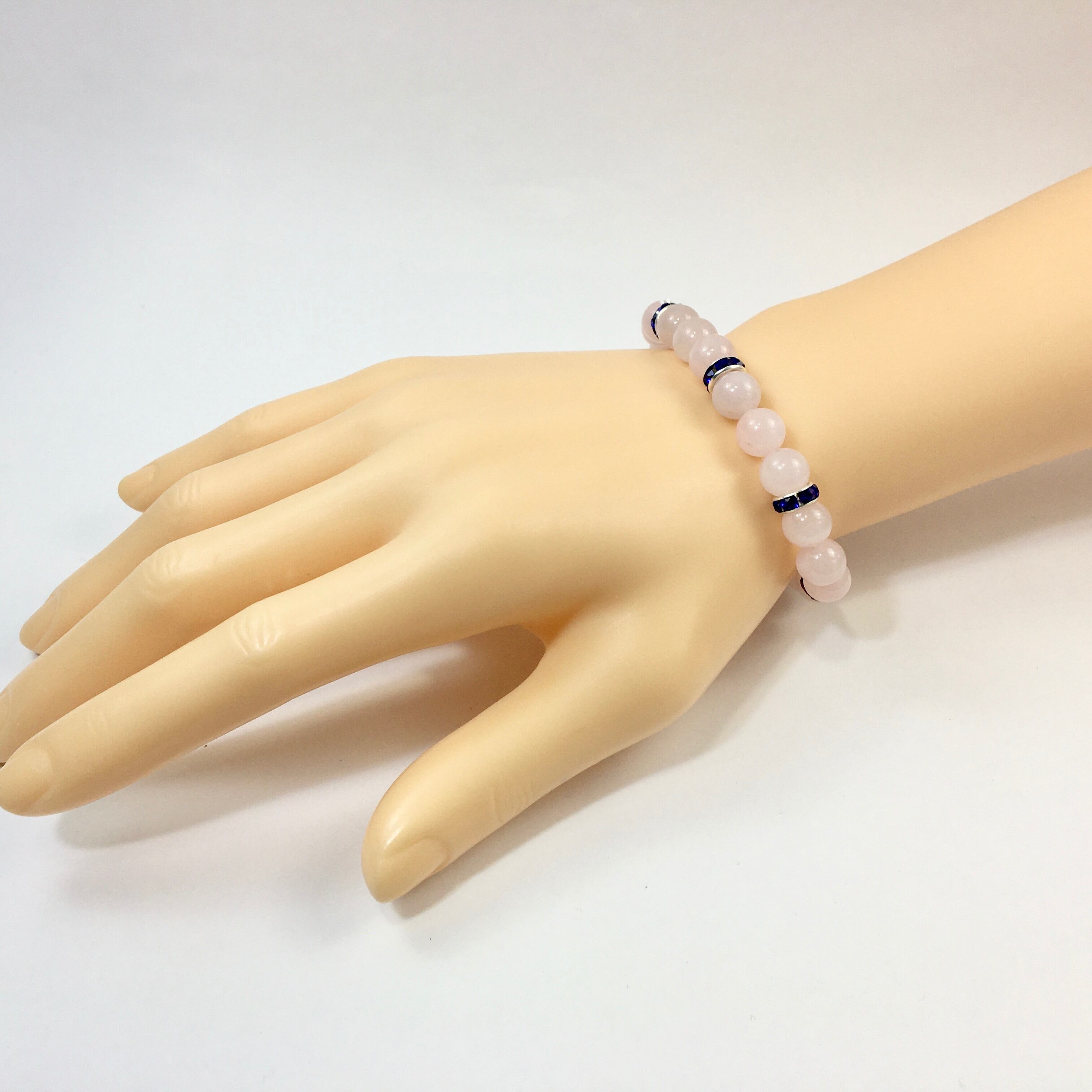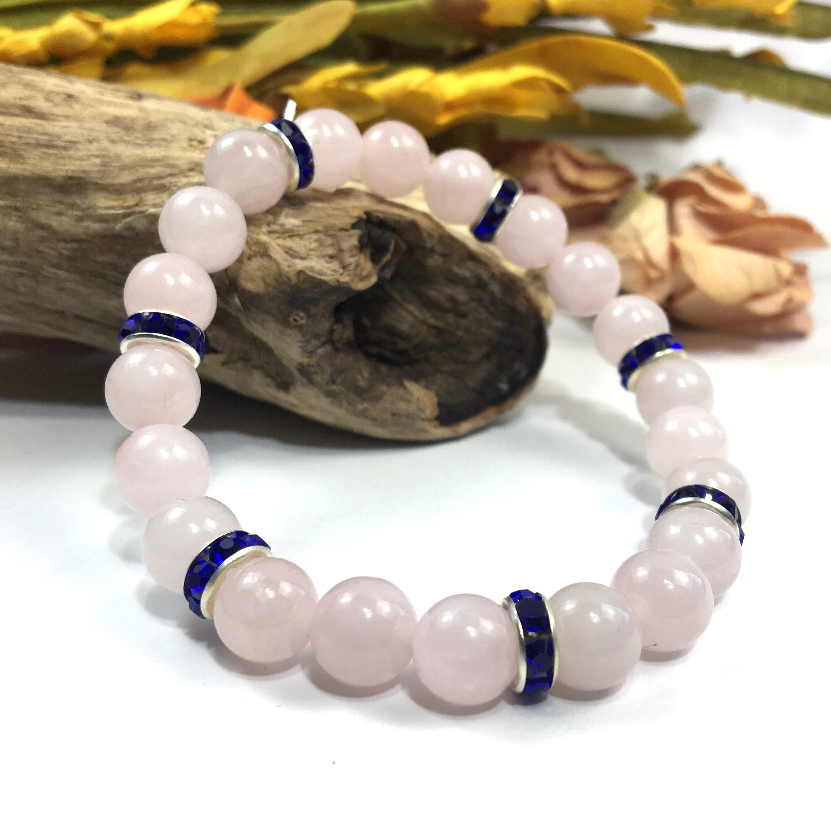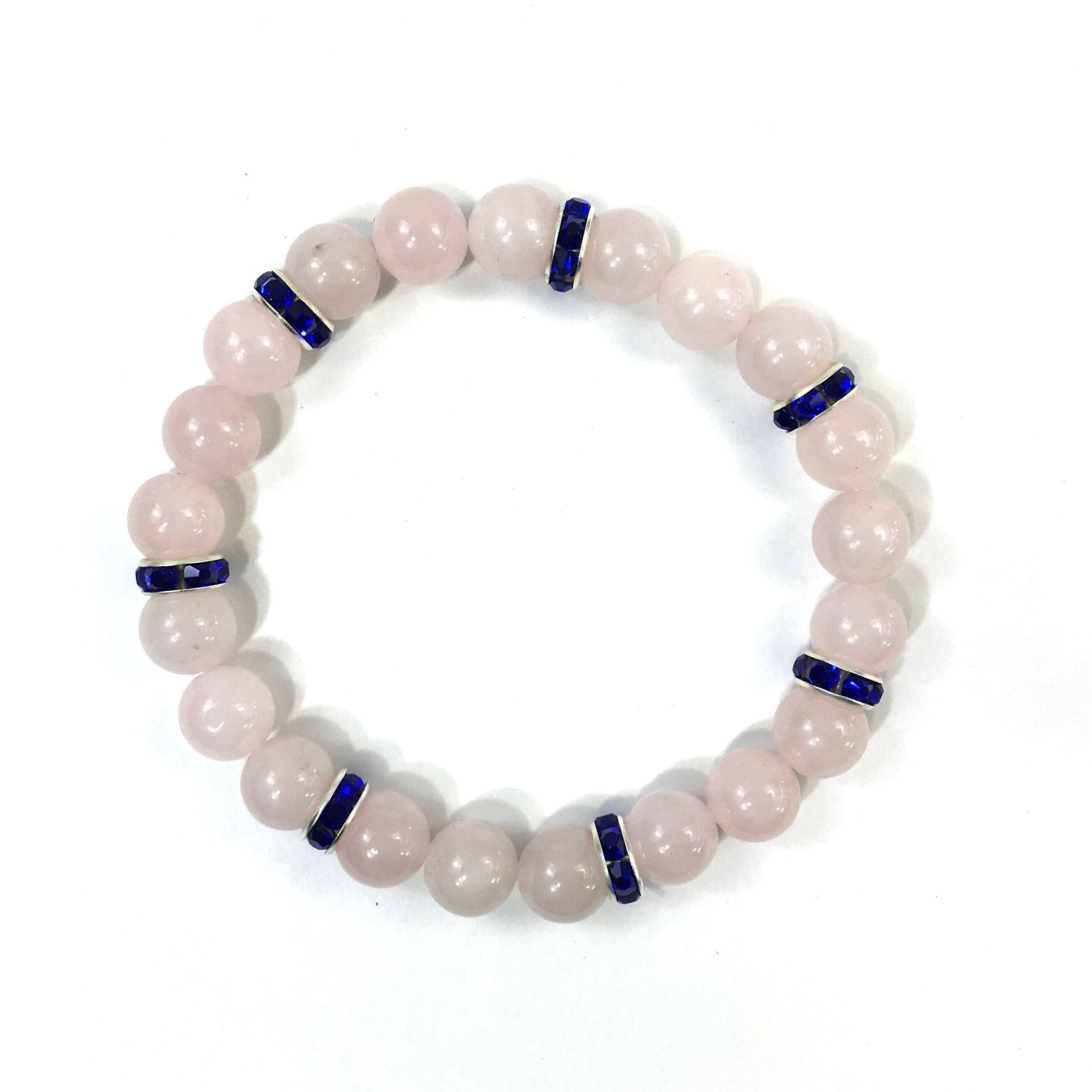 パワーストーン ブレスレット ローズクォーツ 天然石ブレス (ダークブルー)レディース 女性 数珠ブレス 開運 プレゼント ギフト
