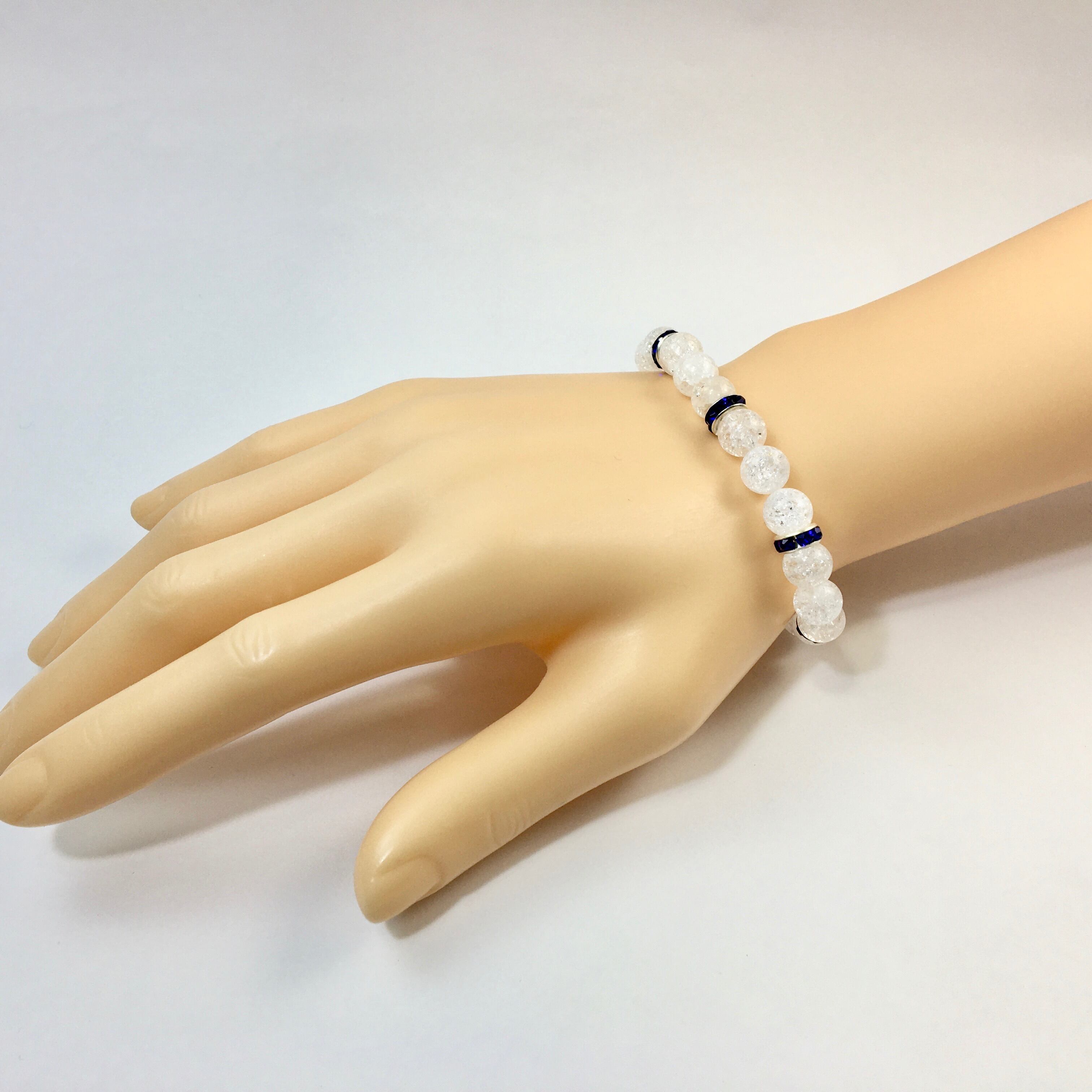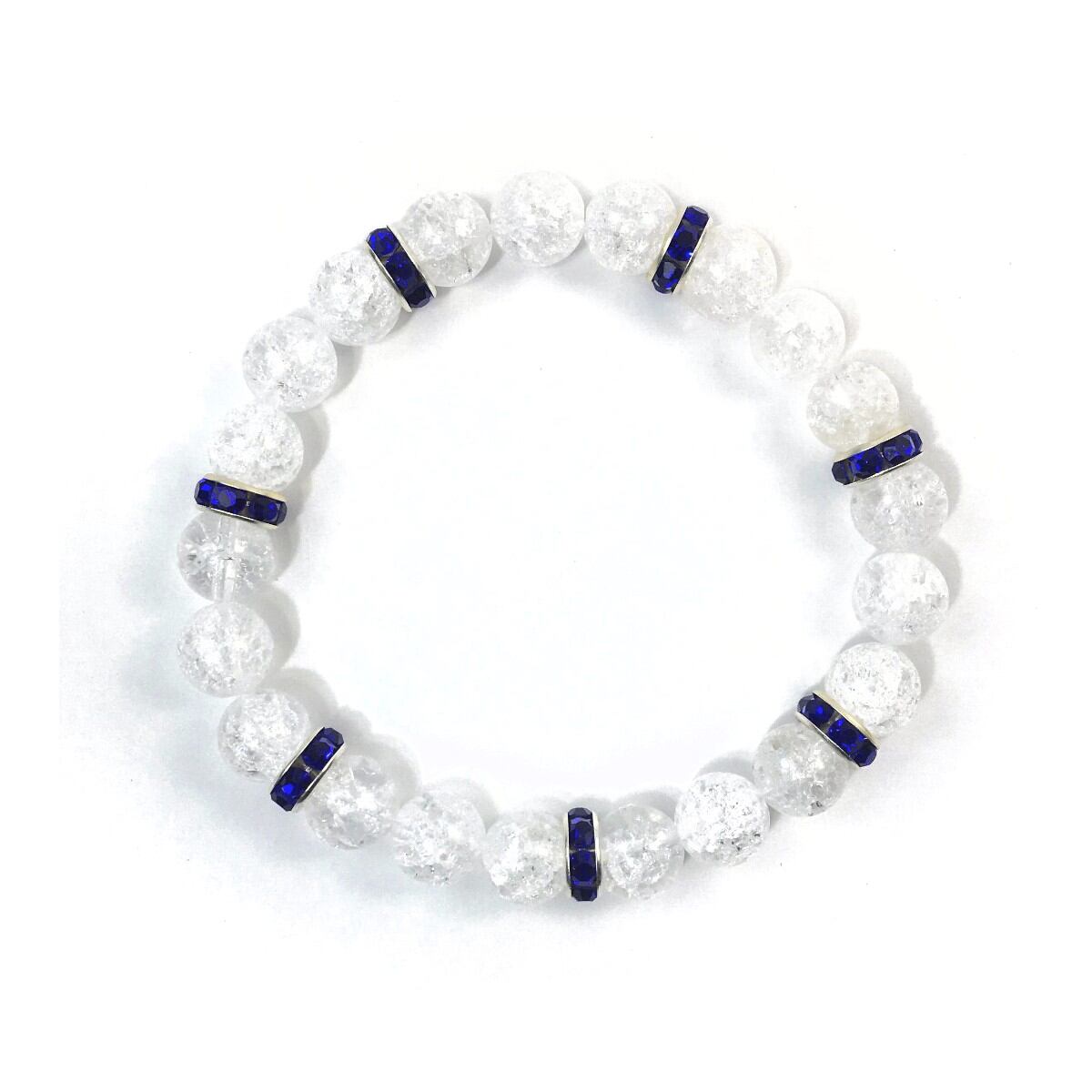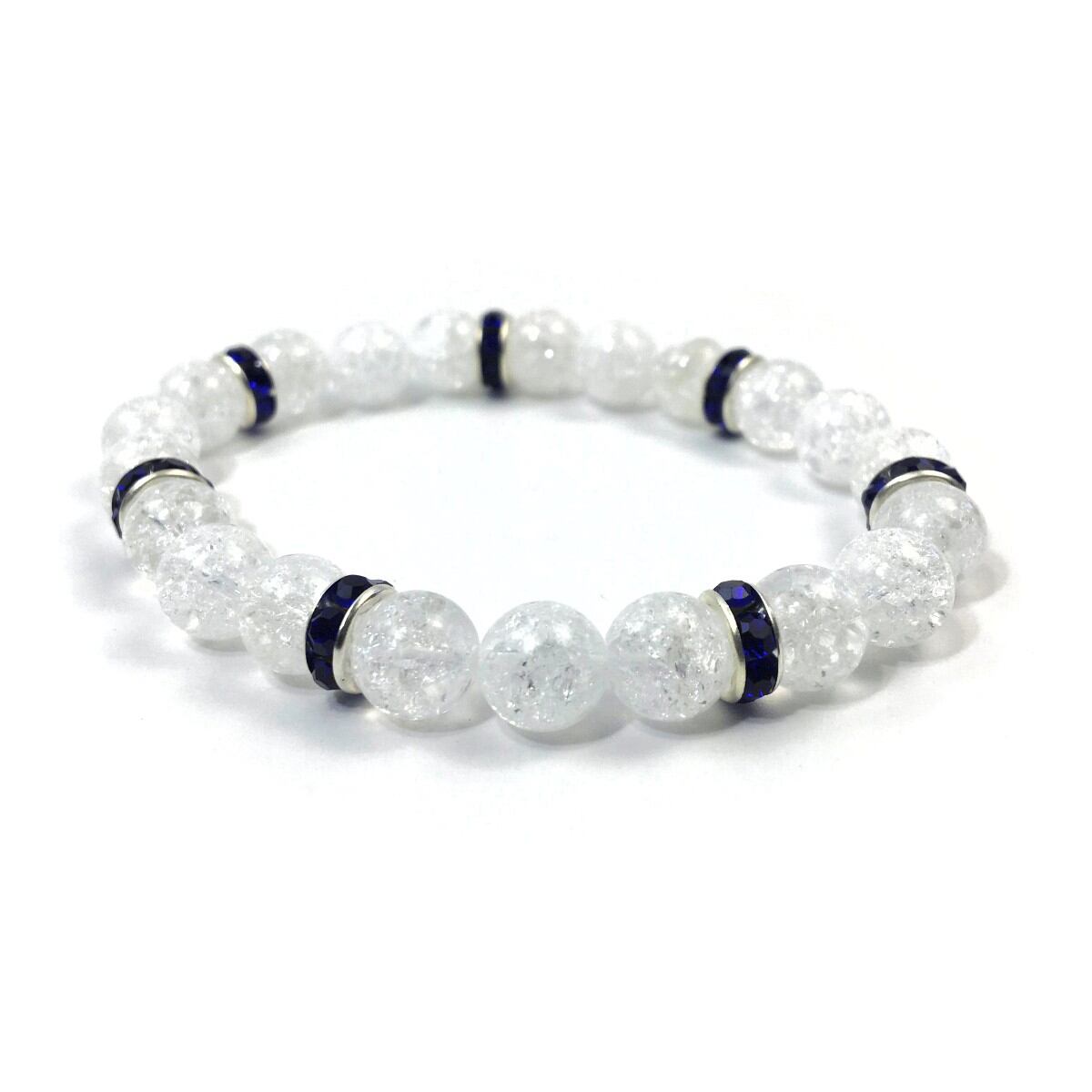 パワーストーン ブレスレット クラック水晶 天然石ブレス (ダークブルー)レディース 女性 数珠ブレス 開運 プレゼント ギフト