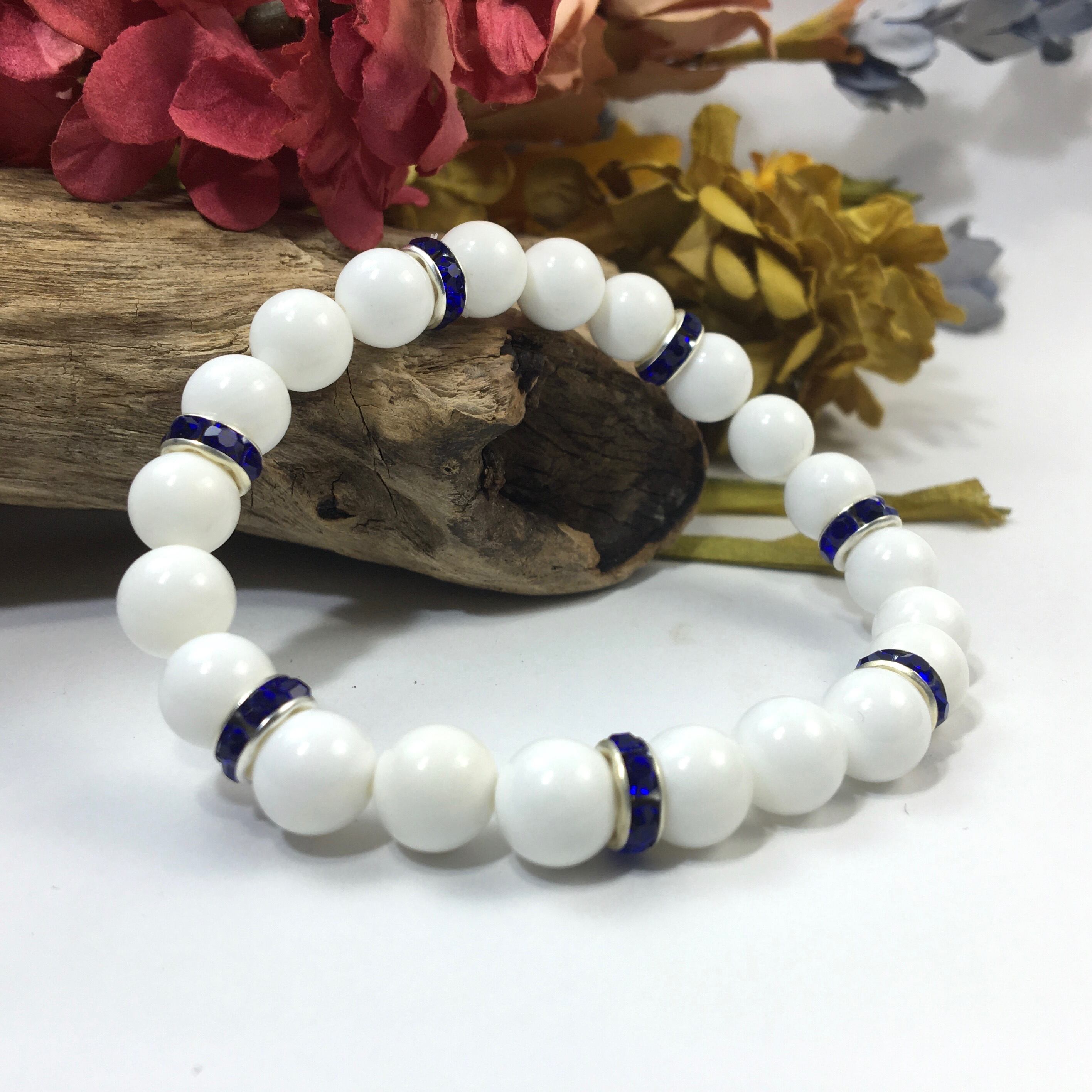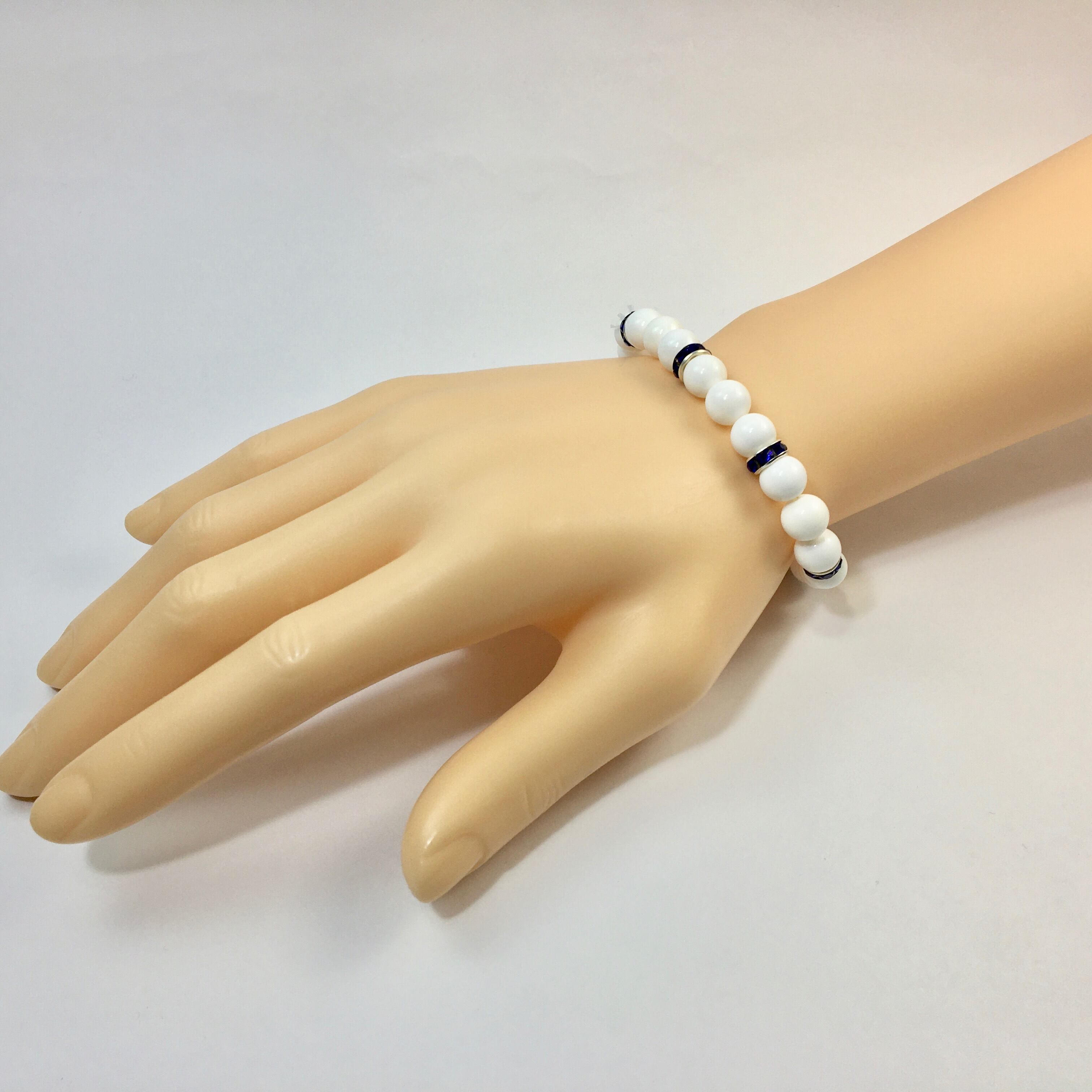 パワーストーン ブレスレット ホワイトオニキス 天然石ブレス (ダークブルー)レディース 女性 数珠ブレス 開運 プレゼント ギフト