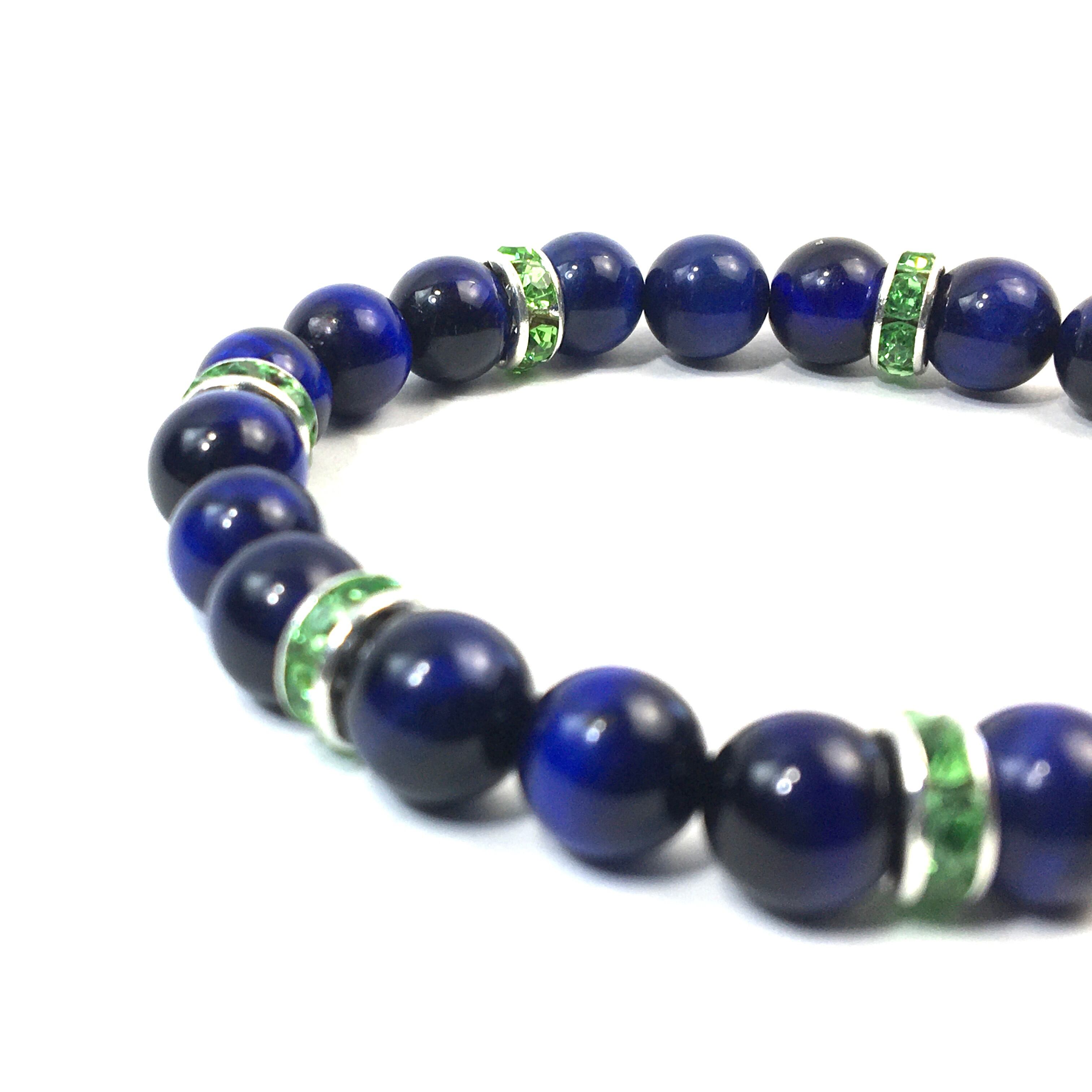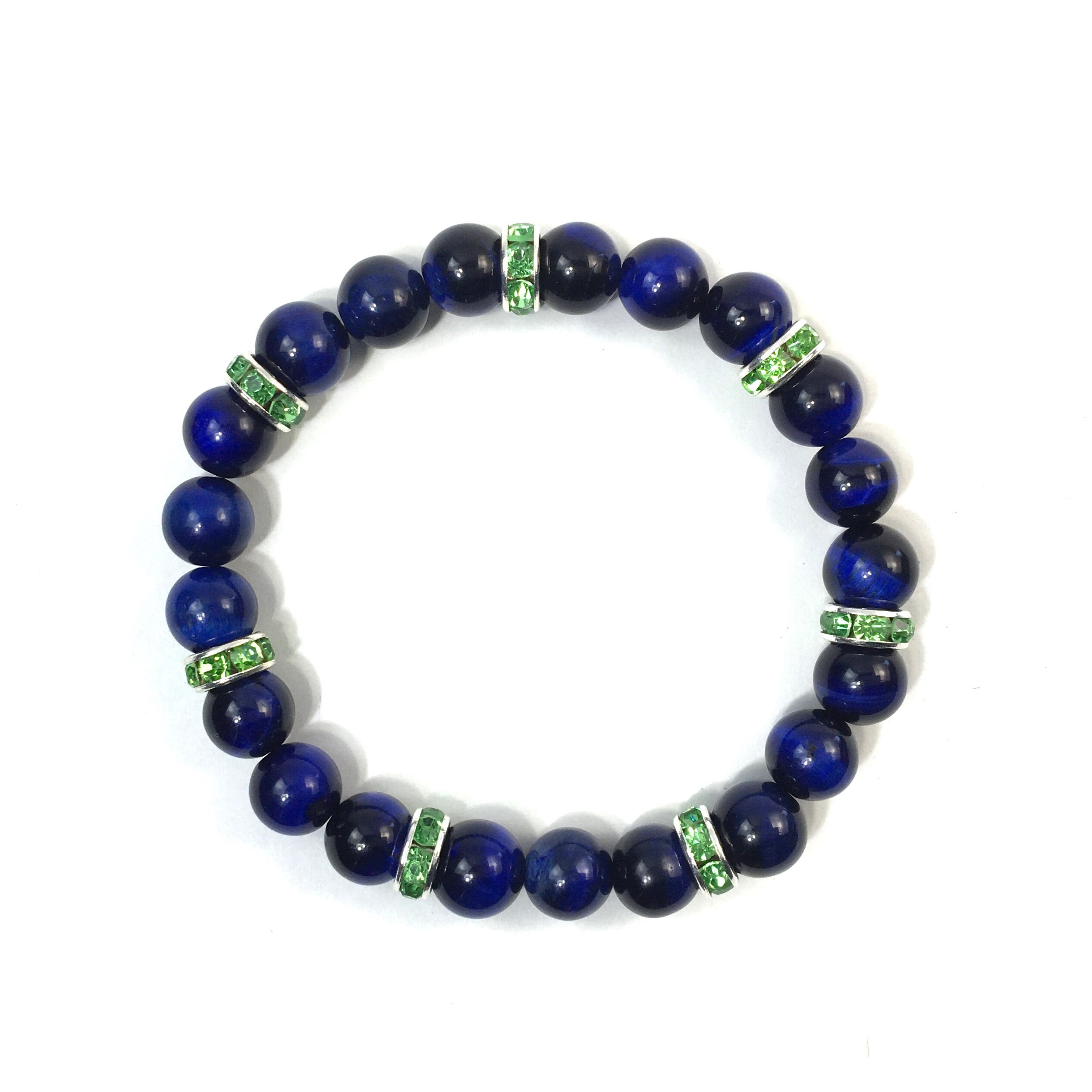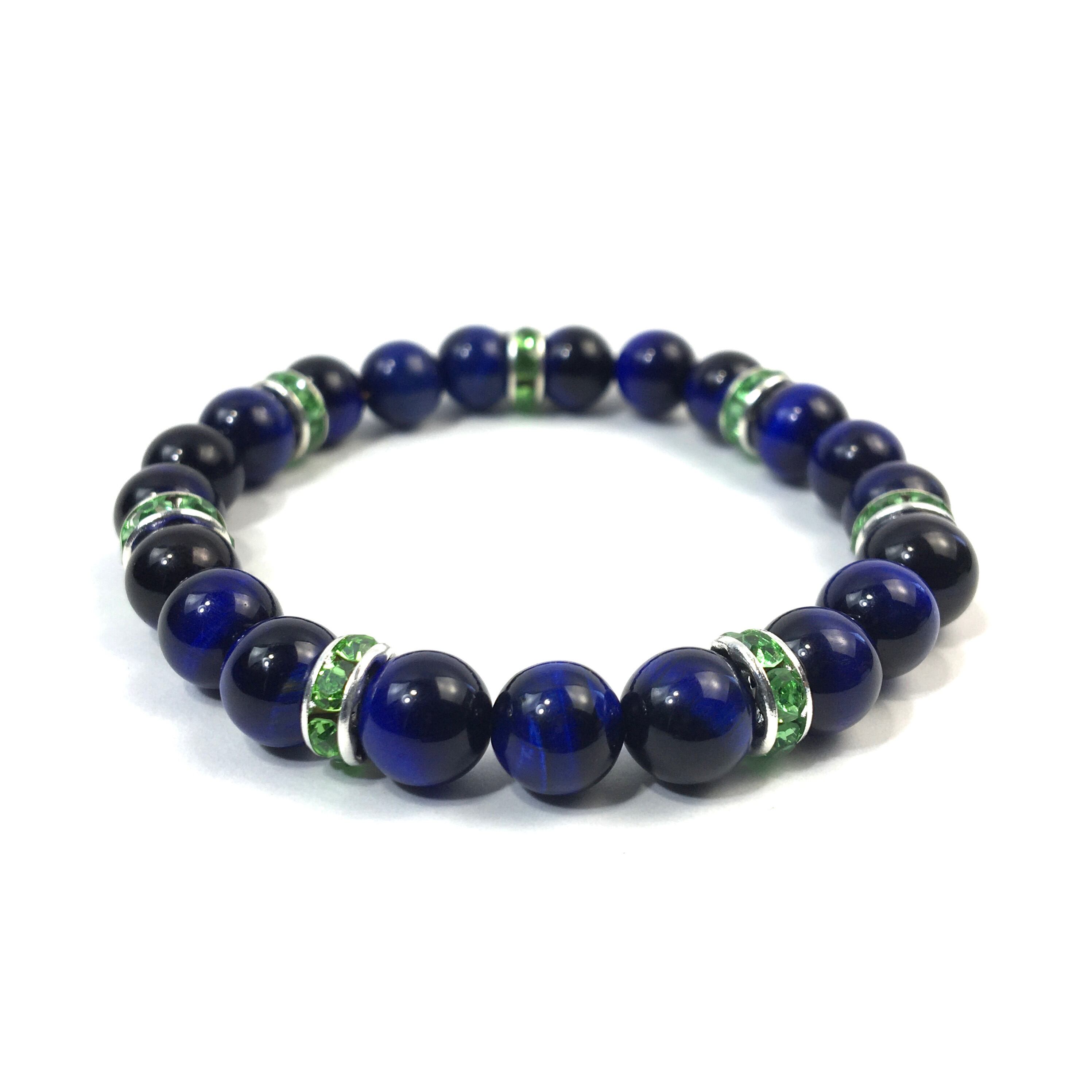 こちらは、8mm玉のブルータイガーアイを使ったパワーストーンブレスレットです。シンプルなデザインでどんなコーディネートにも合わせやすいデザインに仕上げています。サイズは内周約15cmです。気になる方は是非この機会にどうぞ。