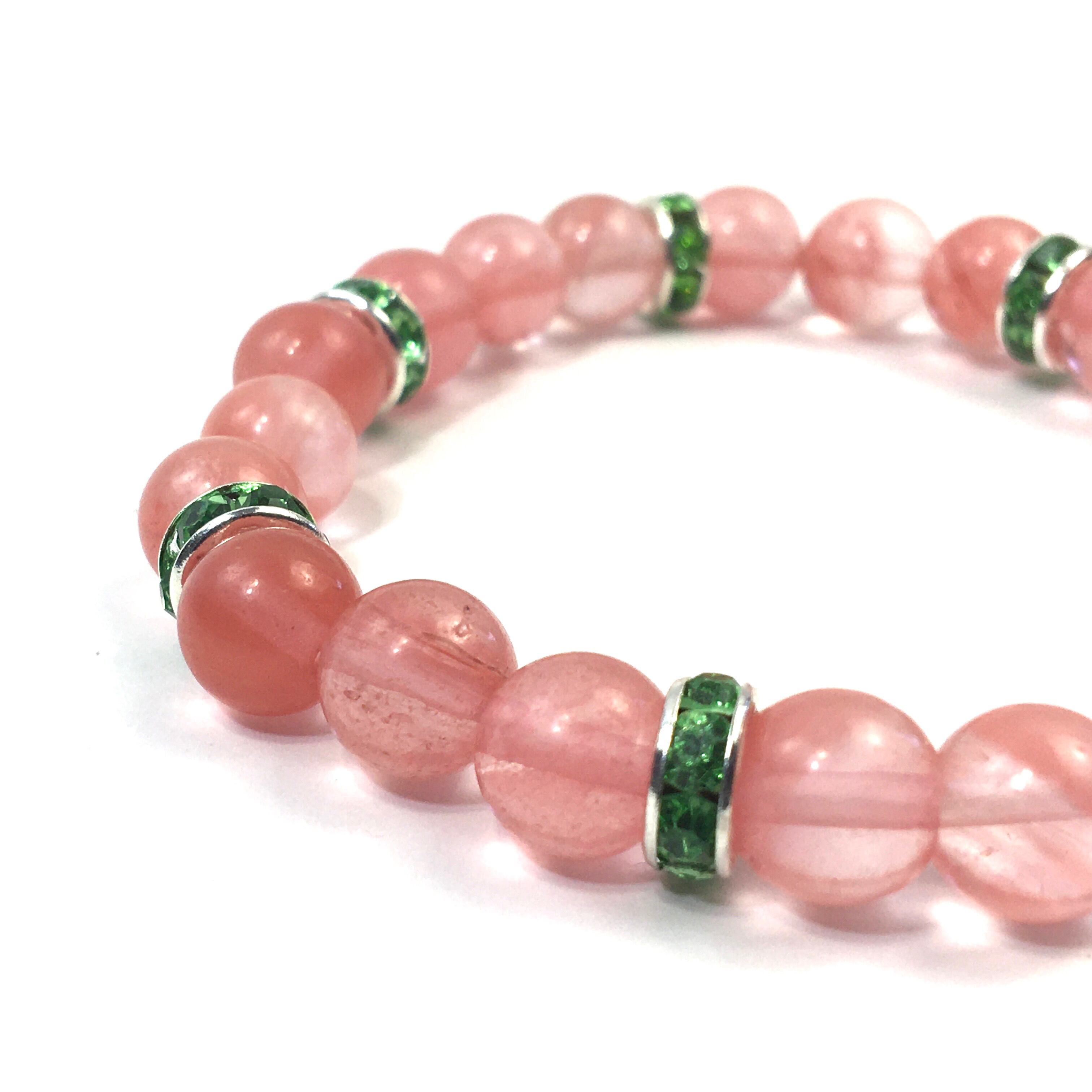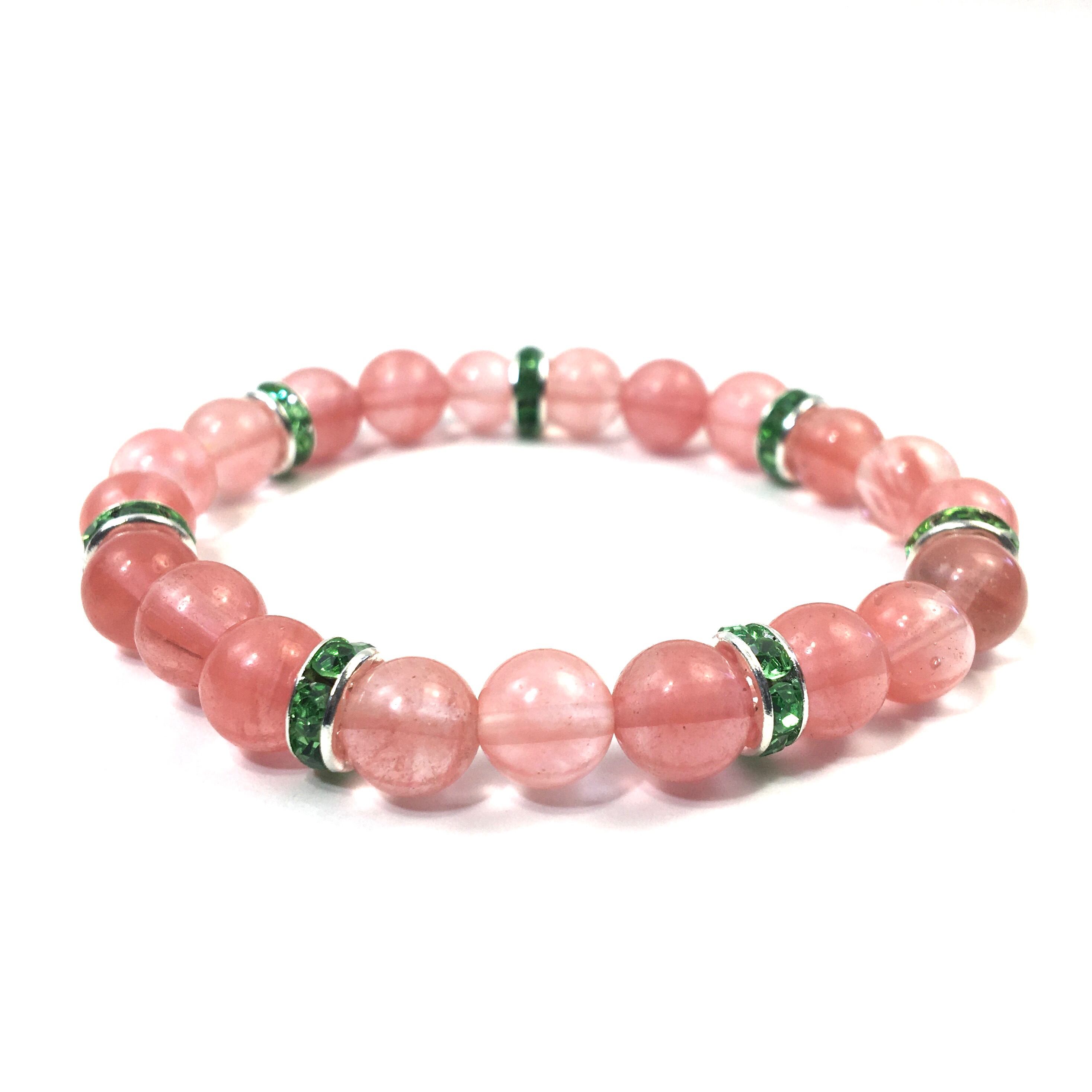 こちらは、8mm玉のチェリークォーツを使ったパワーストーンブレスレットです。シンプルなデザインでどんなコーディネートにも合わせやすいデザインに仕上げています。サイズは内周約15cmです。気になる方は是非この機会にどうぞ。