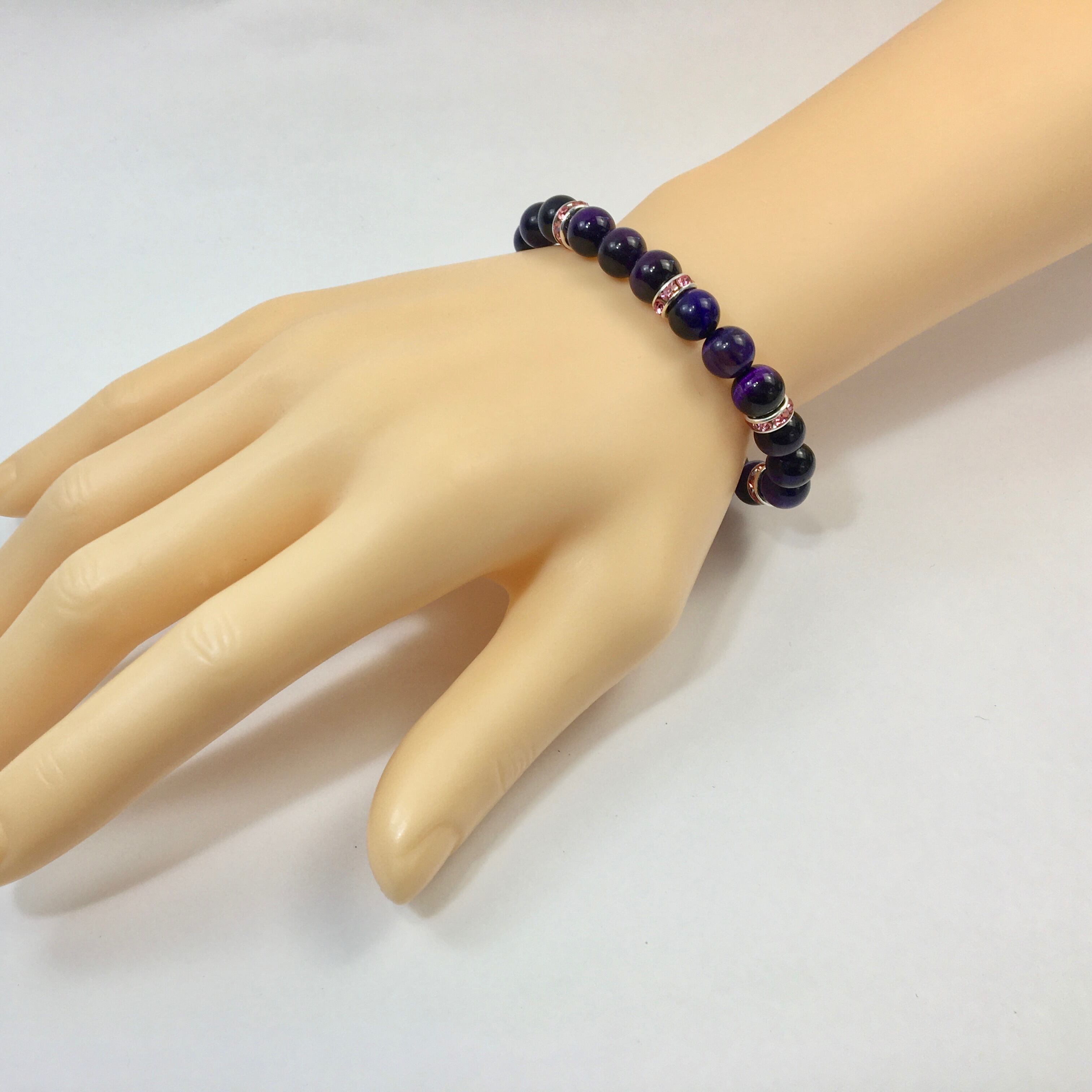 パワーストーン ブレスレット パープルタイガーアイ (ピンク)レディース 女性 数珠ブレス 開運 プレゼント ギフト