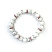 こちらは、8mm玉のハウライトを使ったパワーストーンブレスレットです。シンプルなデザインでどんなコーディネートにも合わせやすいデザインに仕上げています。サイズは内周約15cmです。気になる方は是非この機会にどうぞ。