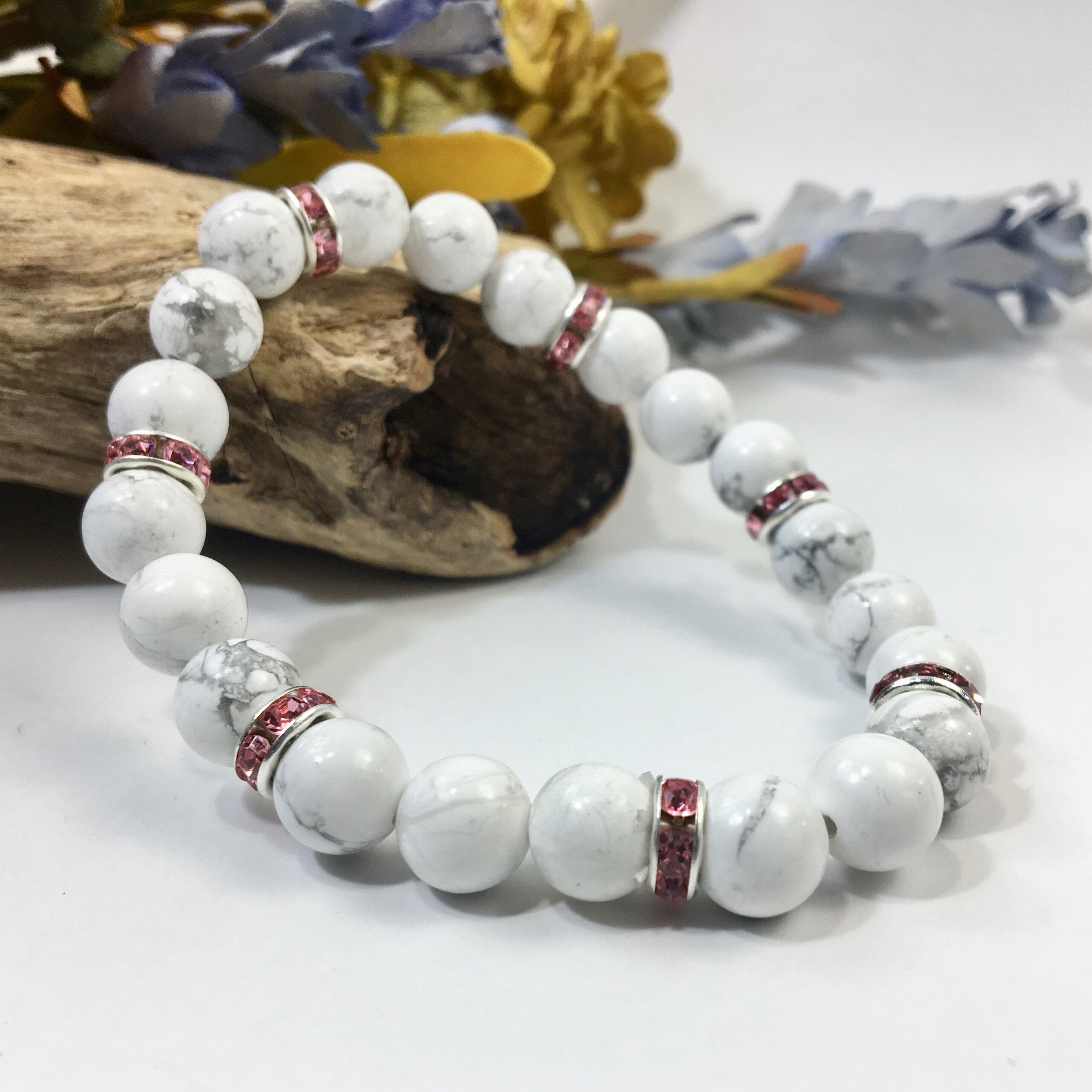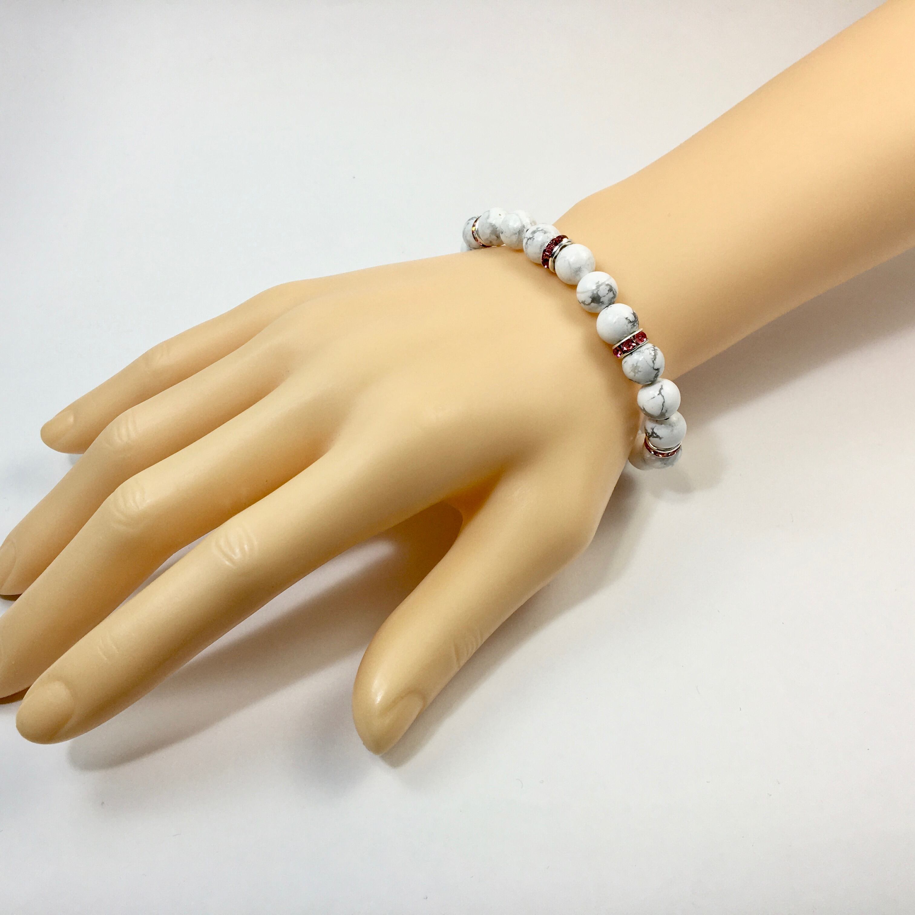 パワーストーン ブレスレット ハウライト 天然石ブレス (ピンク)レディース 女性 数珠ブレス 開運 プレゼント ギフト