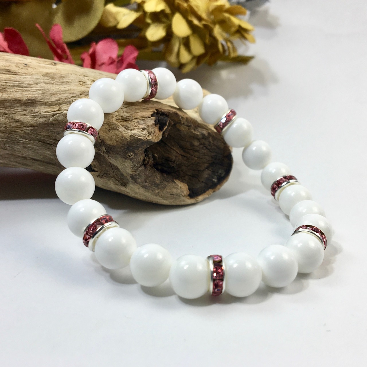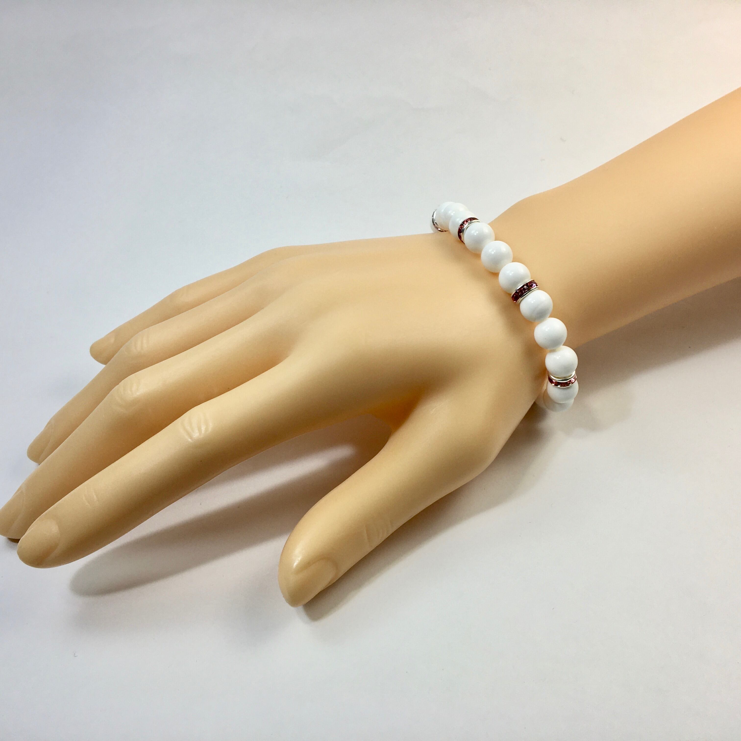パワーストーン ブレスレット ホワイトオニキス 天然石ブレス (ピンク)レディース 女性 数珠ブレス 開運 プレゼント ギフト