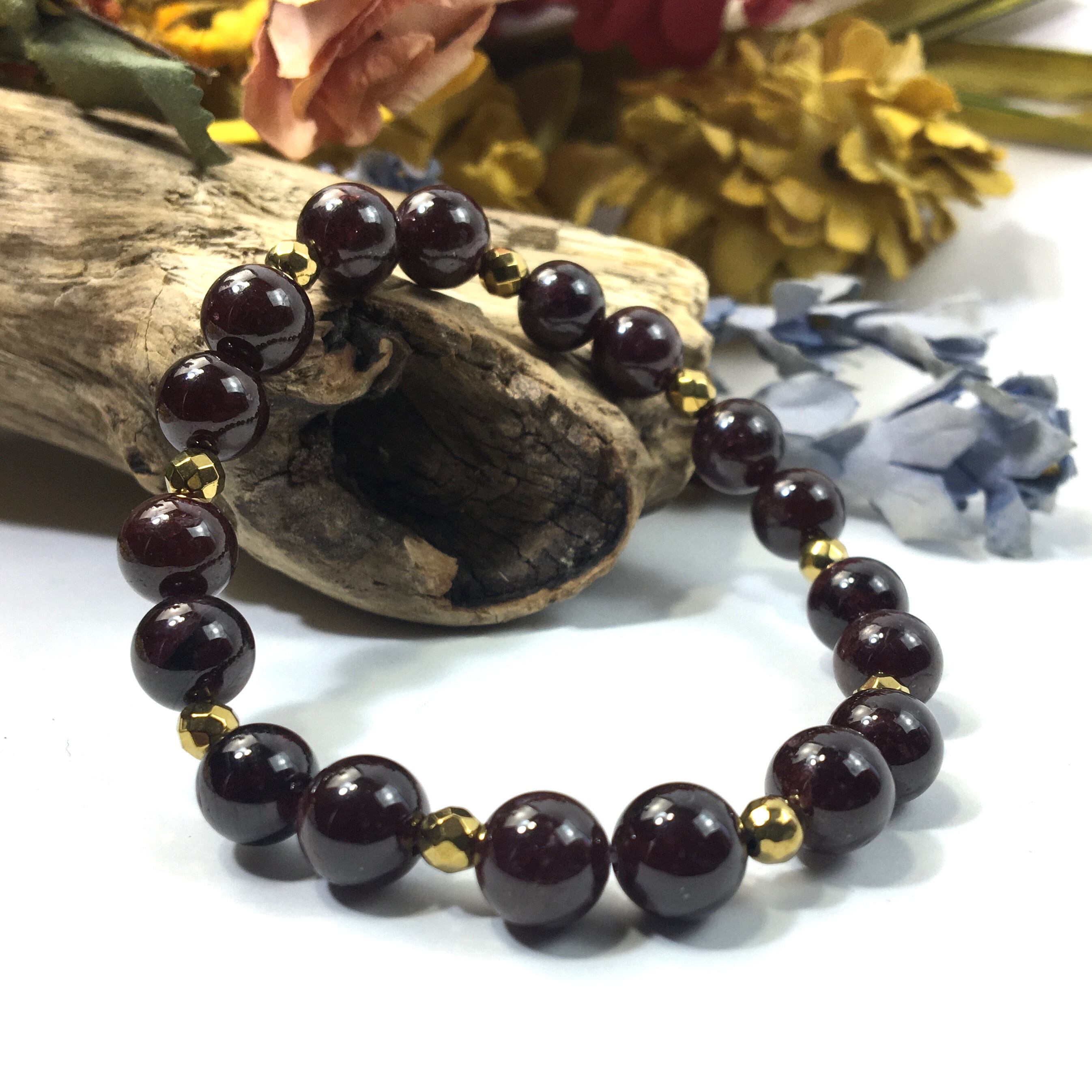 パワーストーン ブレスレット ガーネット 天然石ブレス (ゴールドヘマタイト)レディース 女性 数珠ブレス 開運 プレゼント ギフト