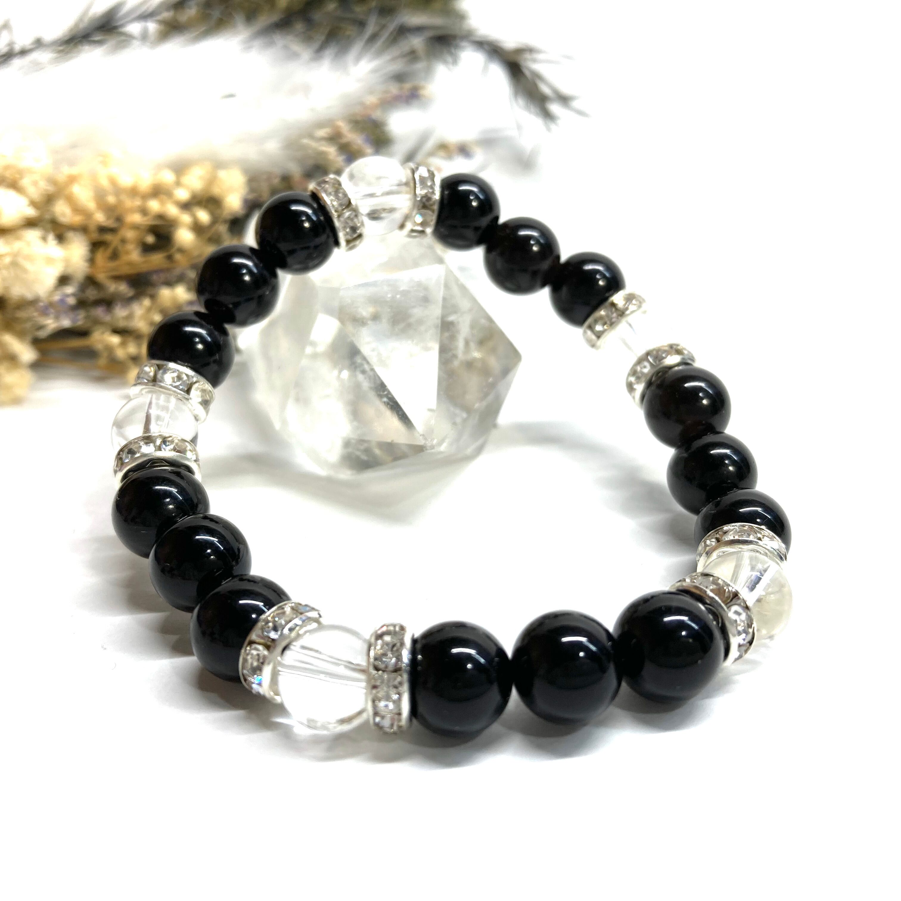 モリオン&水晶 パワーストーン ブレスレット 天然石 (シルバー)8mm レディース 女性 数珠ブレス 開運 プレゼント ギフト