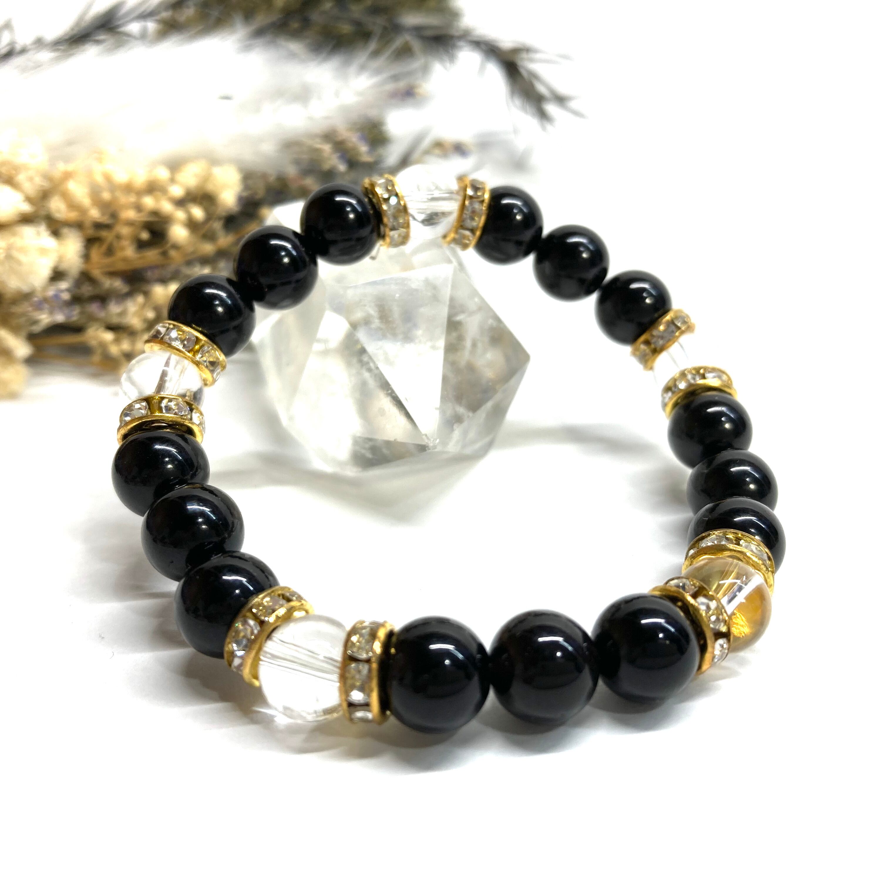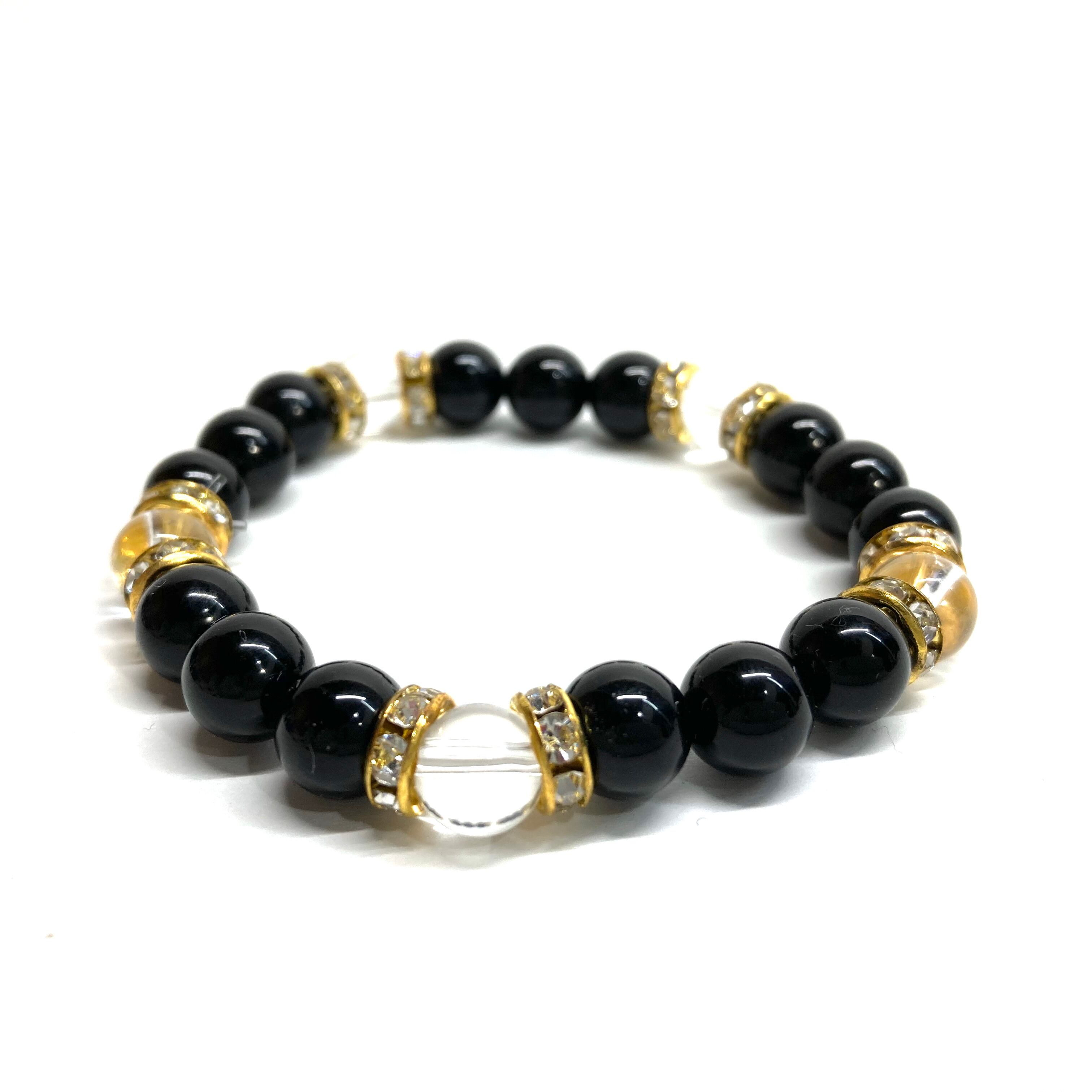 モリオン&水晶 パワーストーン ブレスレット 天然石 (ゴールド)8mm レディース 女性 数珠ブレス 開運 プレゼント ギフト