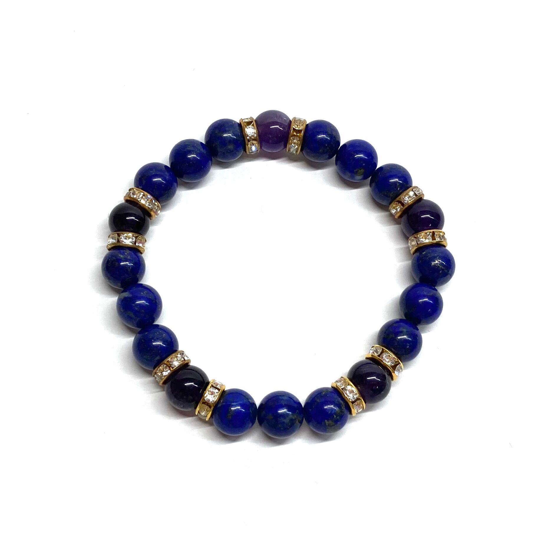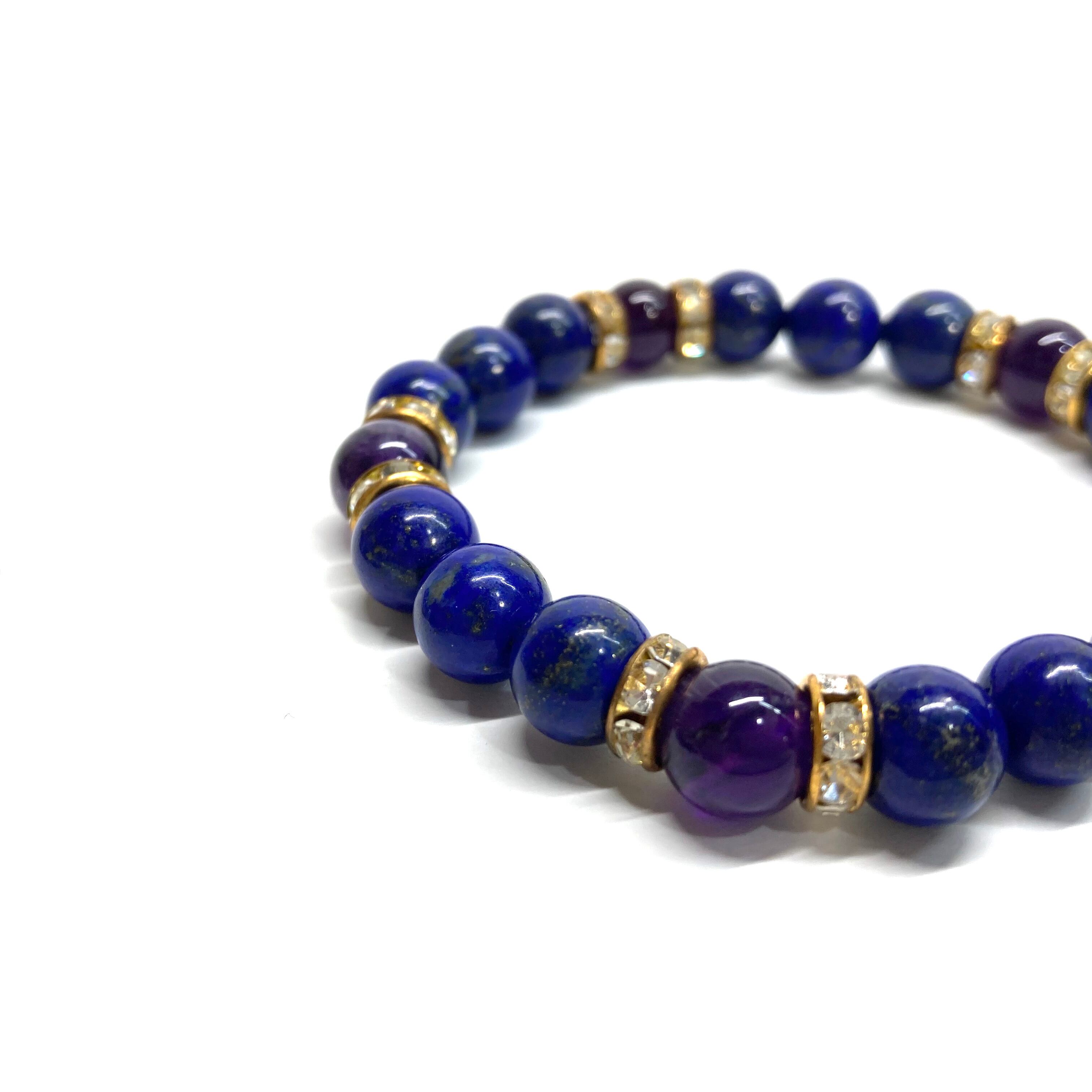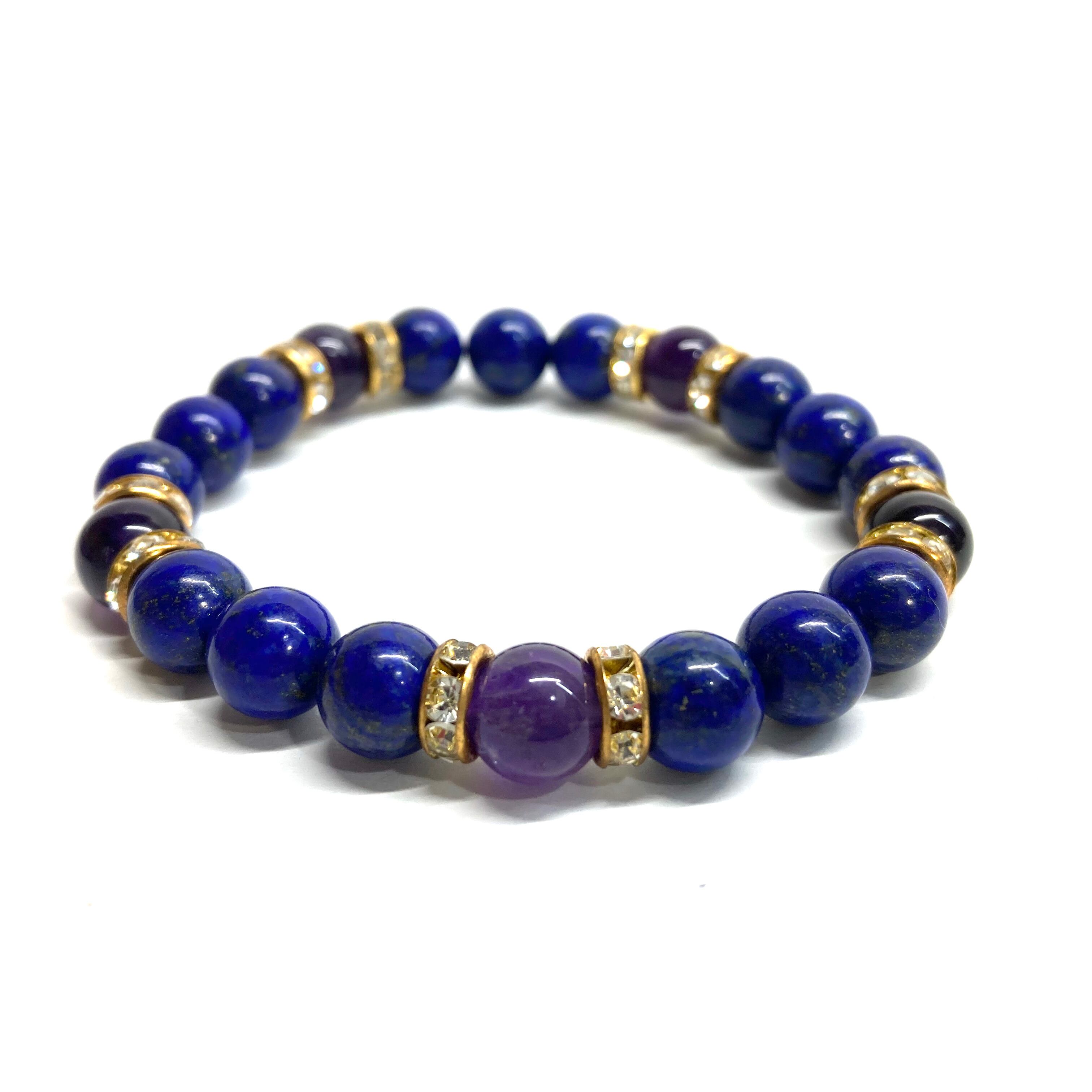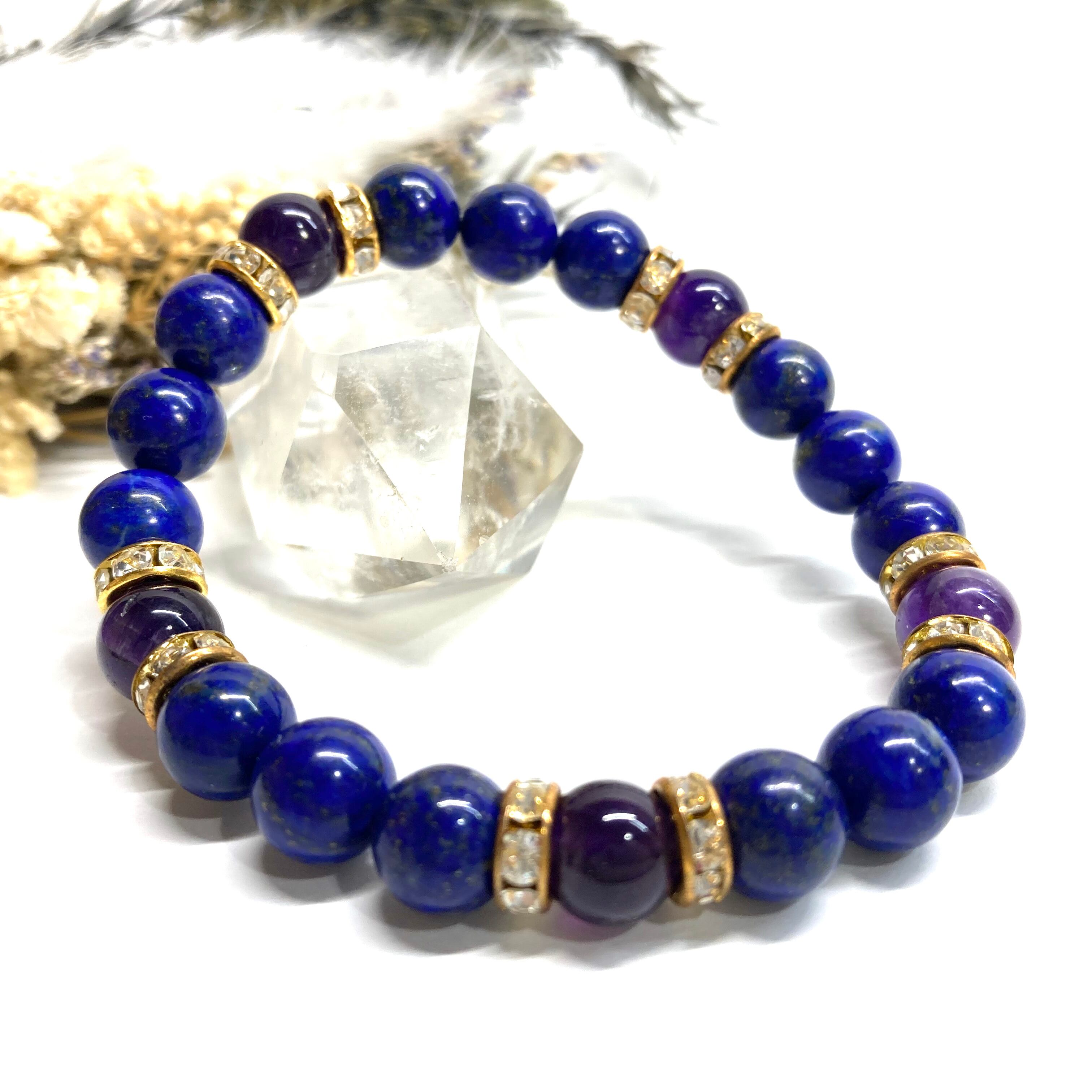 ラピスラズリ&アメジスト パワーストーン ブレスレット 天然石 (ゴールド)8mm レディース 女性 数珠ブレス 開運 プレゼント ギフト