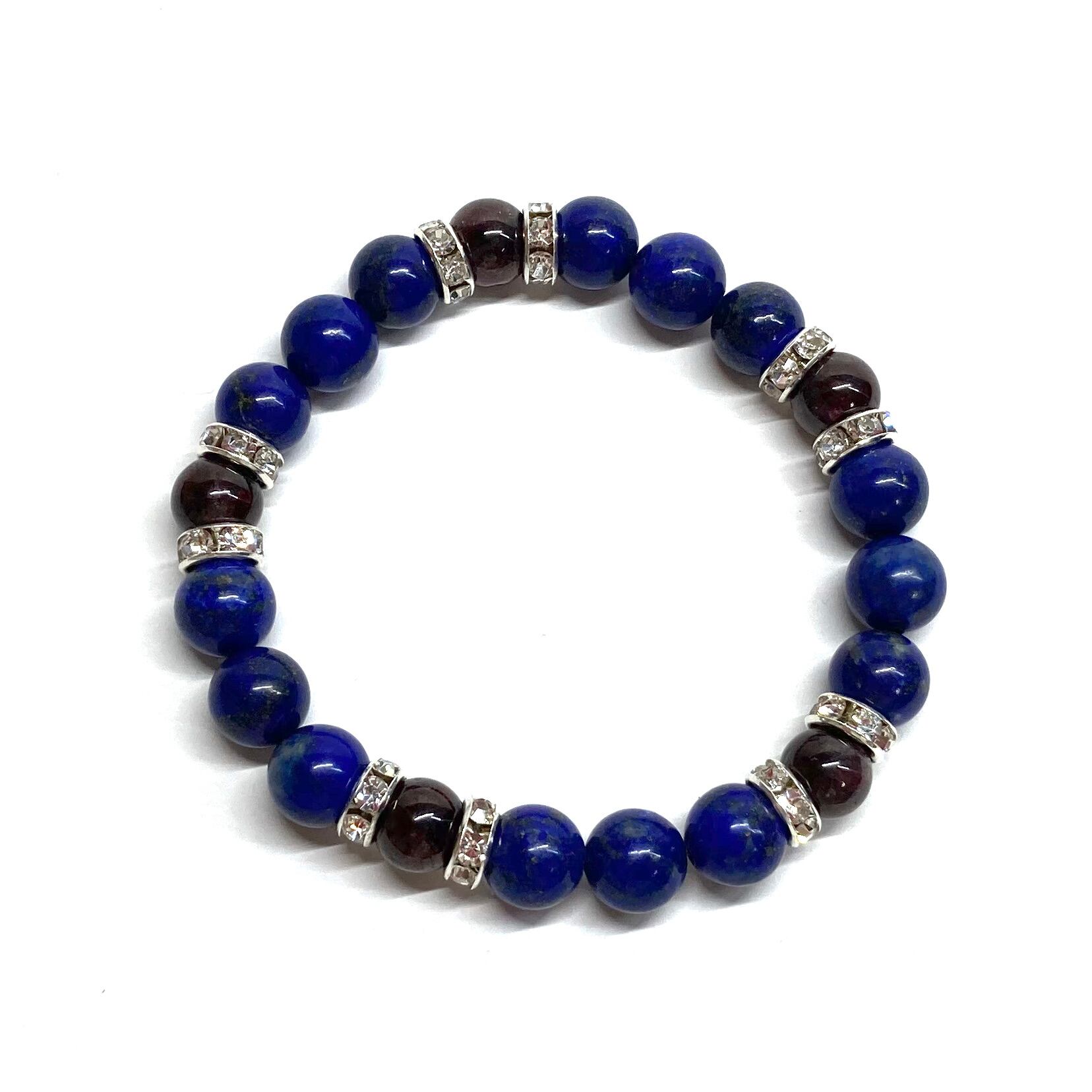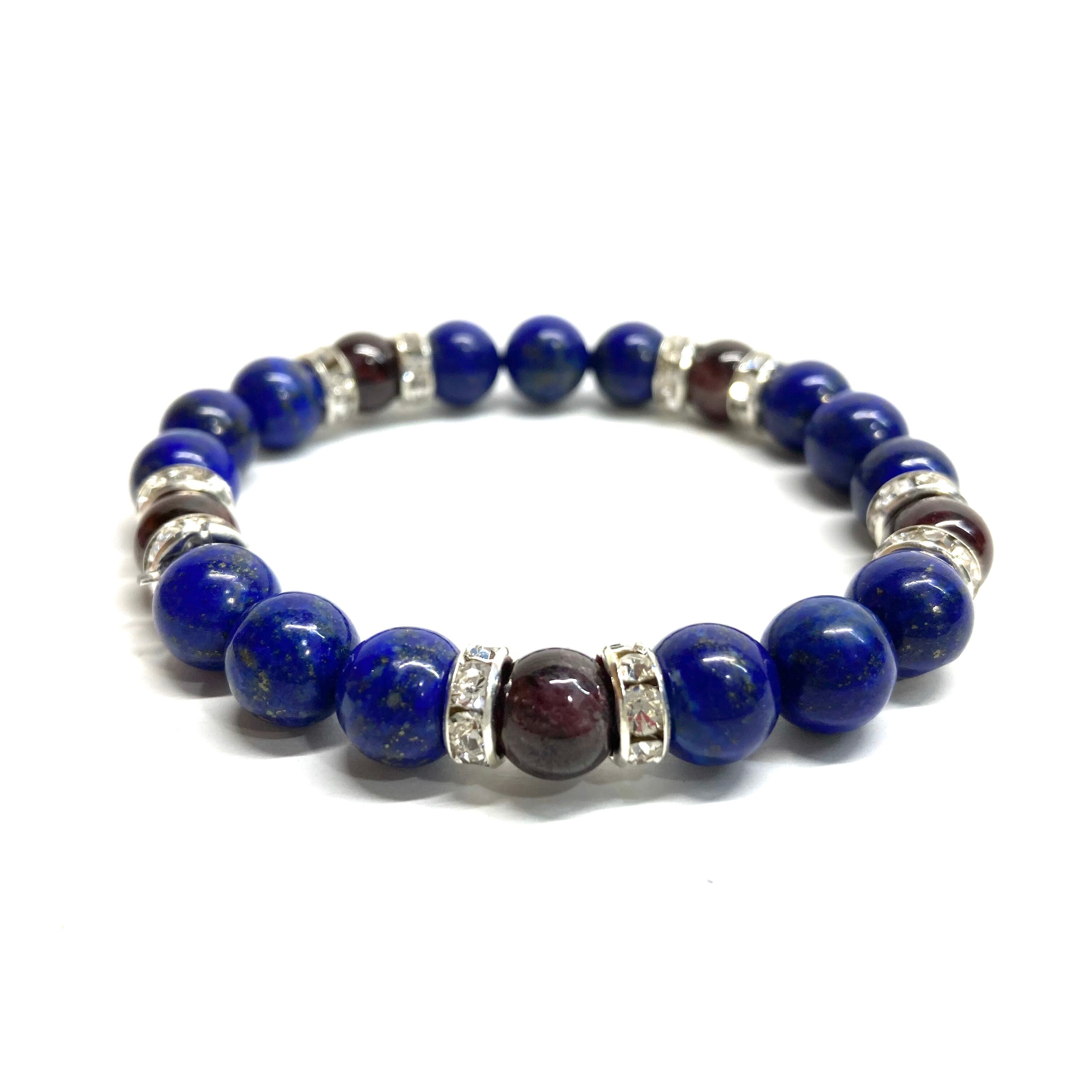 ラピスラズリ&ガーネット パワーストーン ブレスレット 天然石 (シルバー)8mm レディース 女性 数珠ブレス 開運 プレゼント ギフト