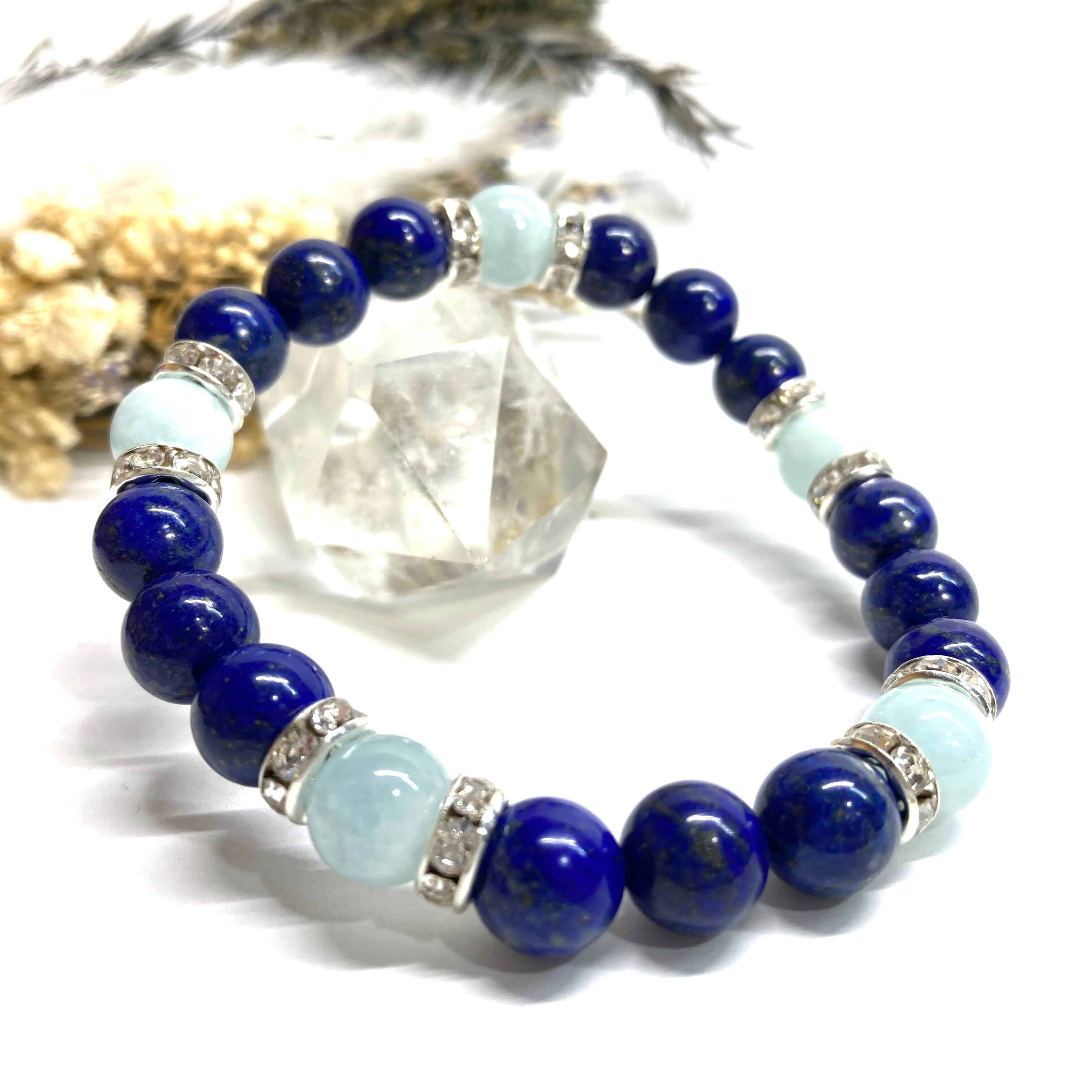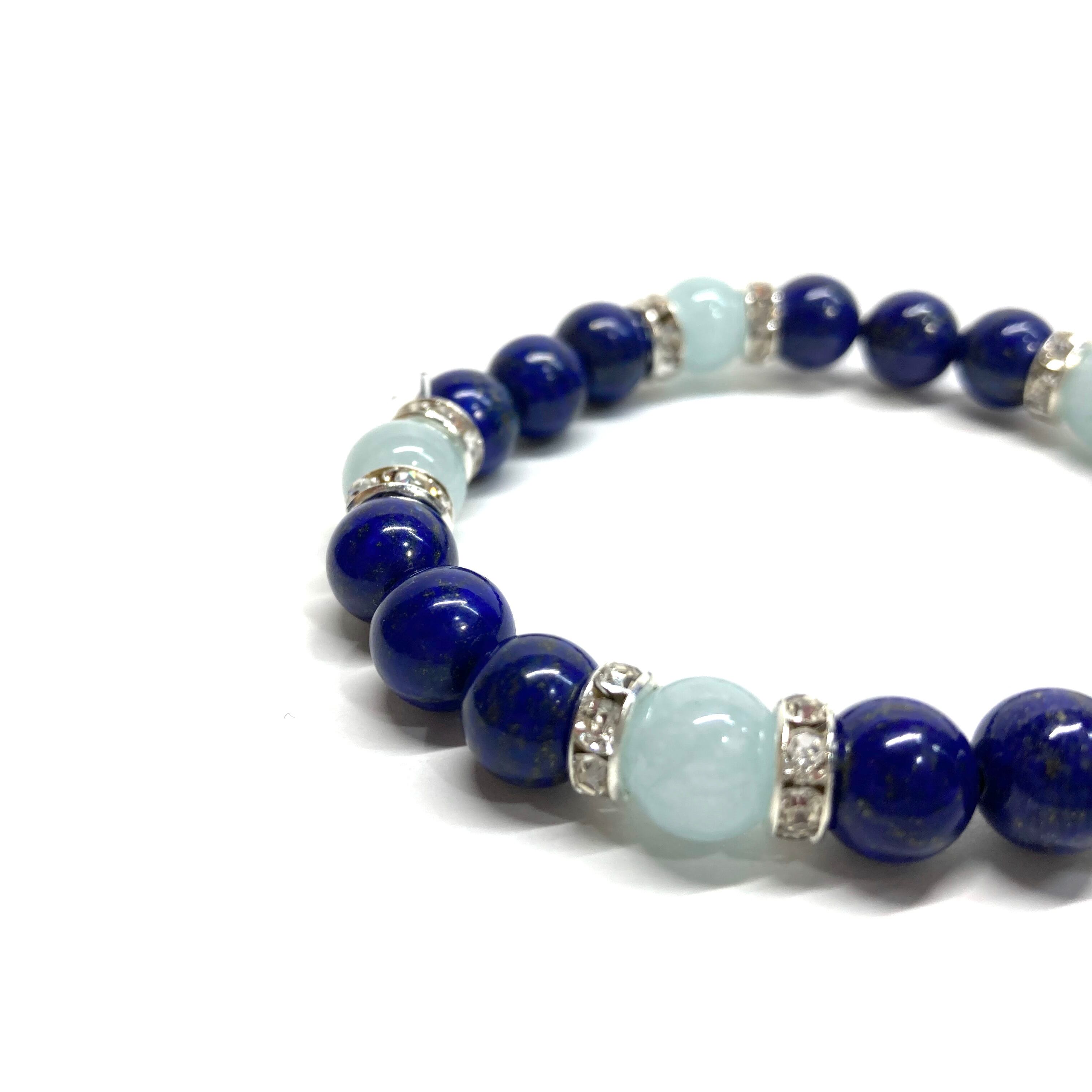 ラピスラズリ&アクアマリン パワーストーン ブレスレット 天然石 (シルバー)8mm レディース 女性 数珠ブレス 開運 プレゼント ギフト