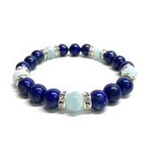 こちらは、8mm玉のラピスラズリとアクアマリン使ったパワーストーンブレスレットです。今回は五芒星デザインで石を配置しております。五芒星は厄除・開運を願うデザインと重宝されているデザインです。サイズは内周 約15cmです。気になる方は是非この機会にどうぞ。