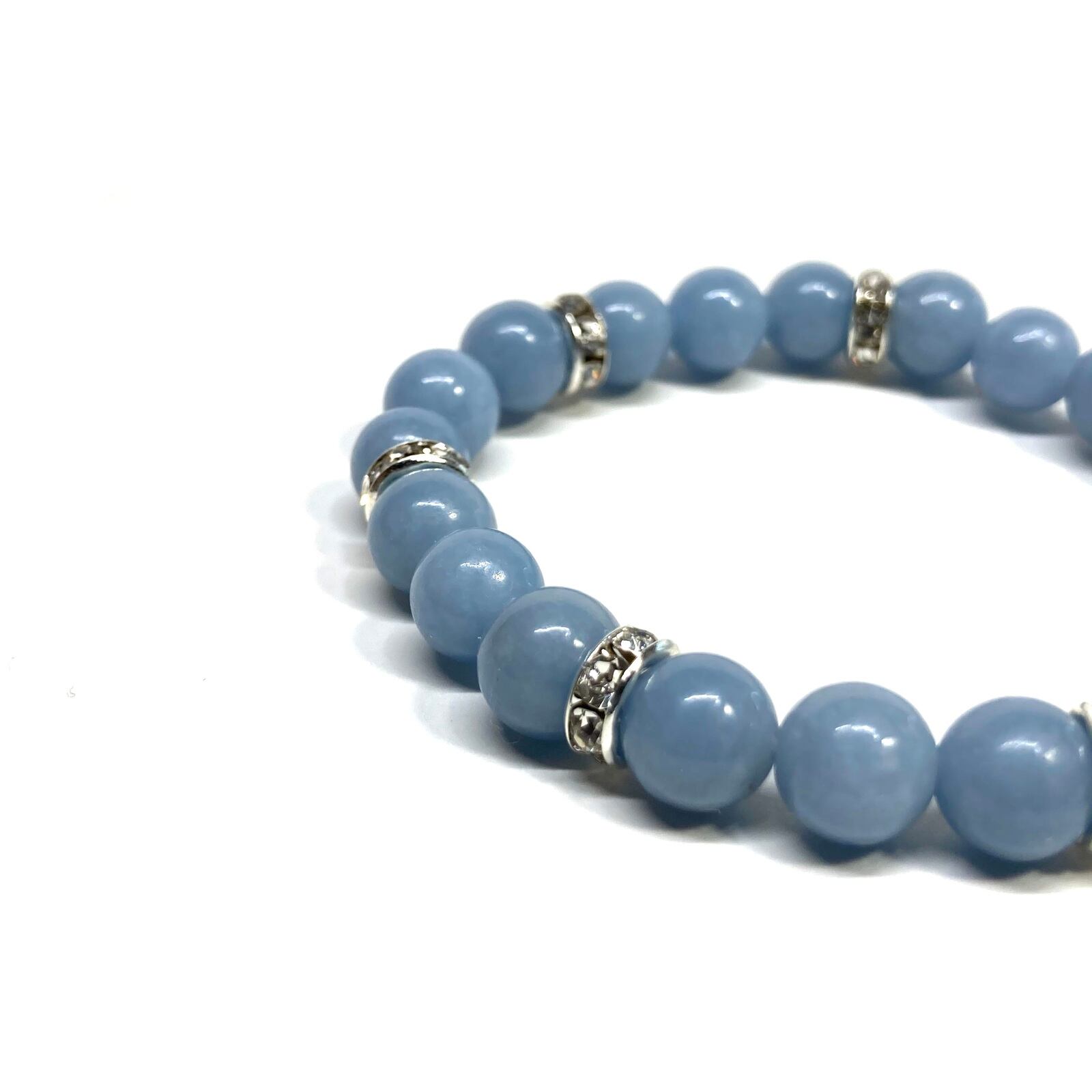 エンジェライト パワーストーン ブレスレット 天然石ブレス (シルバー)8mm レディース 女性 数珠ブレス 開運 プレゼント ギフト