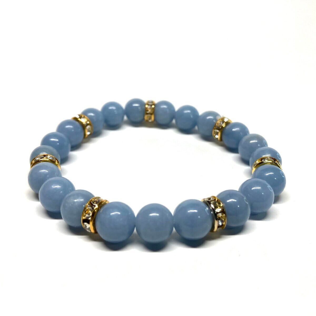 エンジェライト パワーストーン ブレスレット 天然石ブレス (ゴールド)8mm レディース 女性 数珠ブレス 開運 プレゼント ギフト