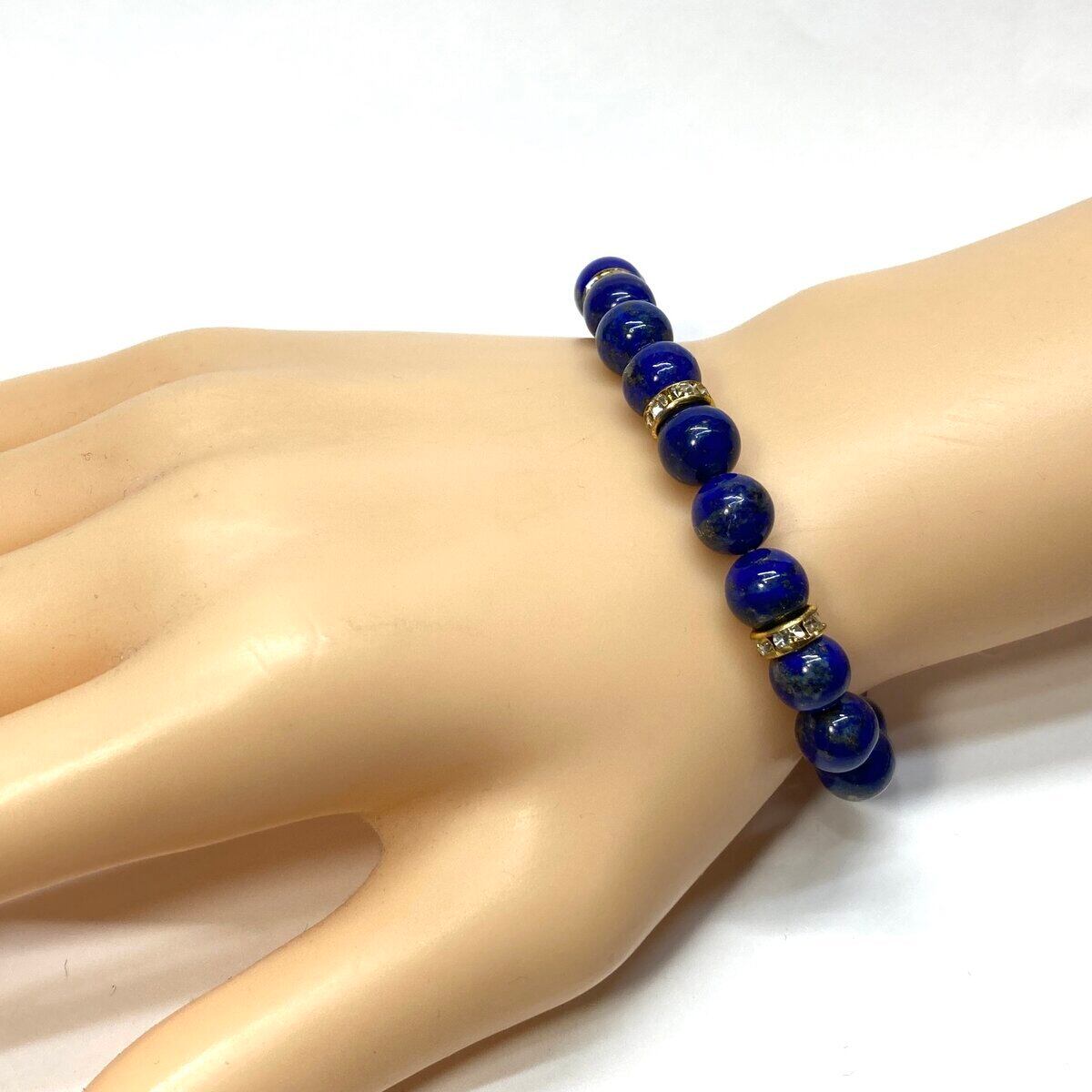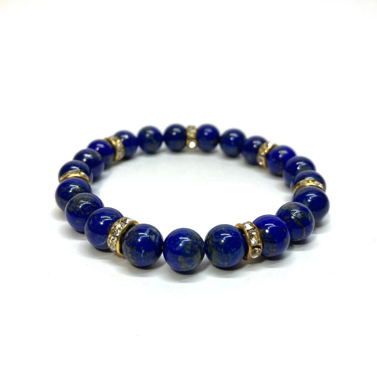 こちらは、8mm玉のラピスラズリを使ったパワーストーンブレスレットです。シンプルなデザインでどんなコーディネートにも合わせやすいデザインに仕上げています。サイズは内周約15cmです。気になる方は是非この機会にどうぞ。