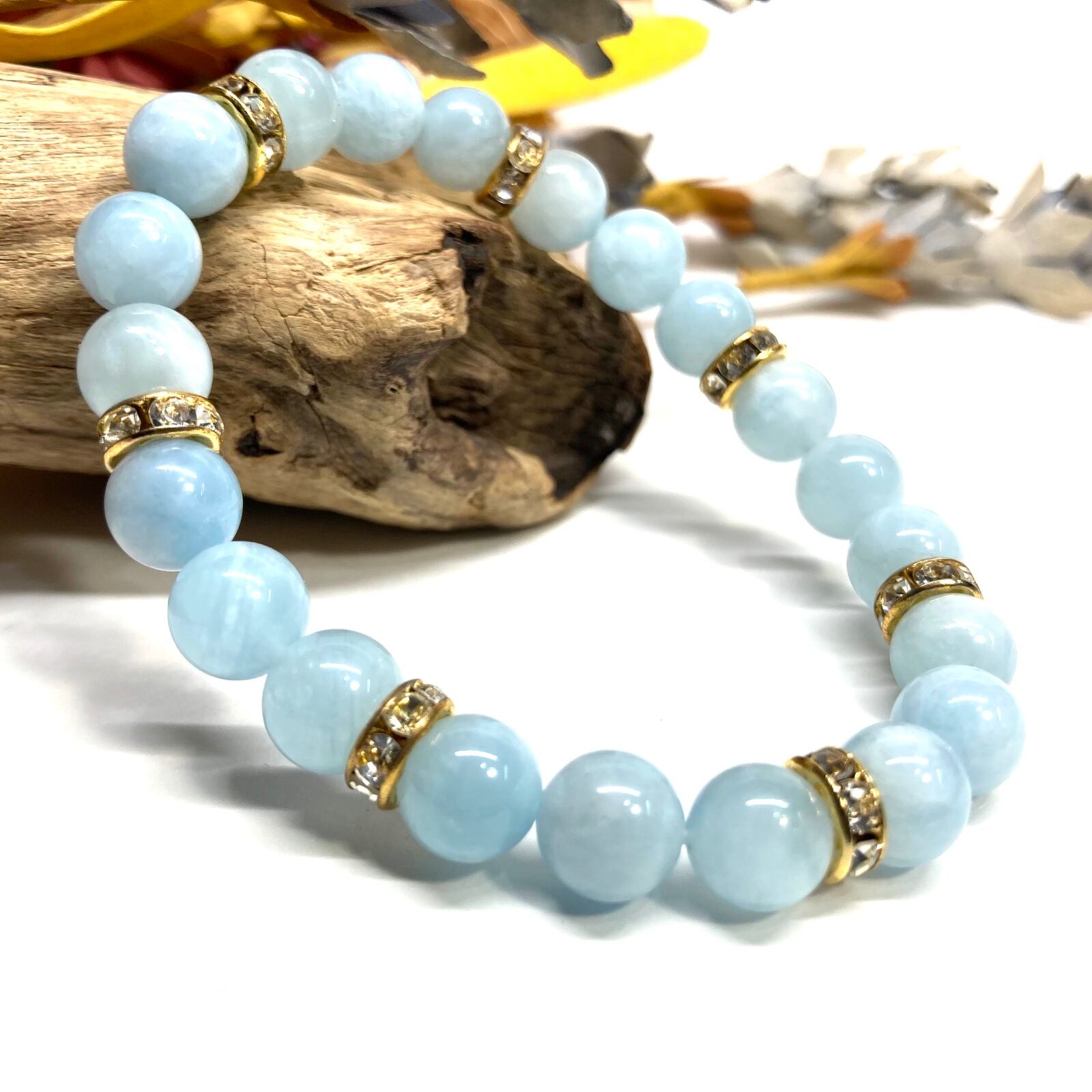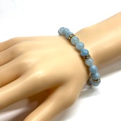 アクアマリン パワーストーン ブレスレット 天然石ブレス (ゴールド)8mm レディース 女性 数珠ブレス 開運 プレゼント ギフト