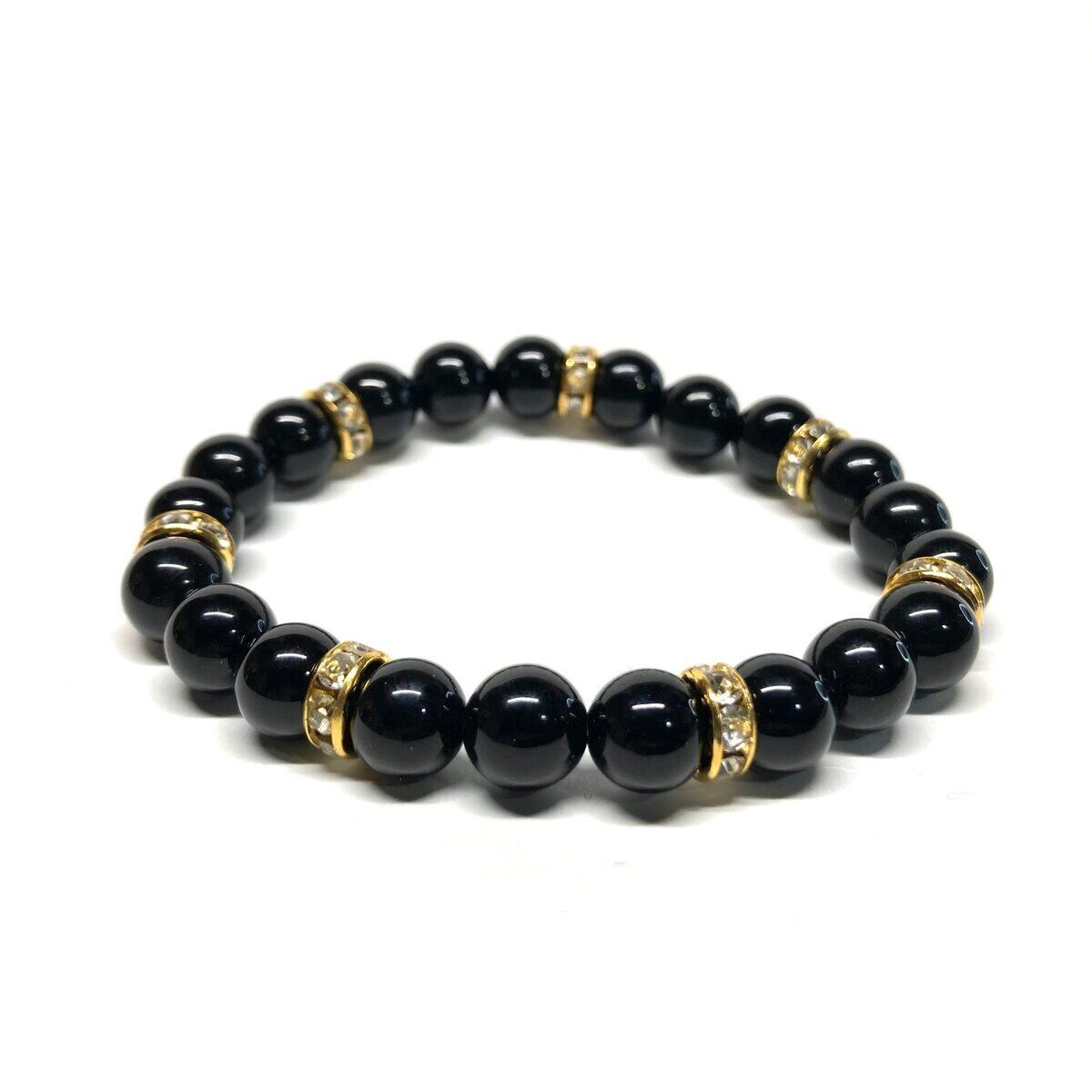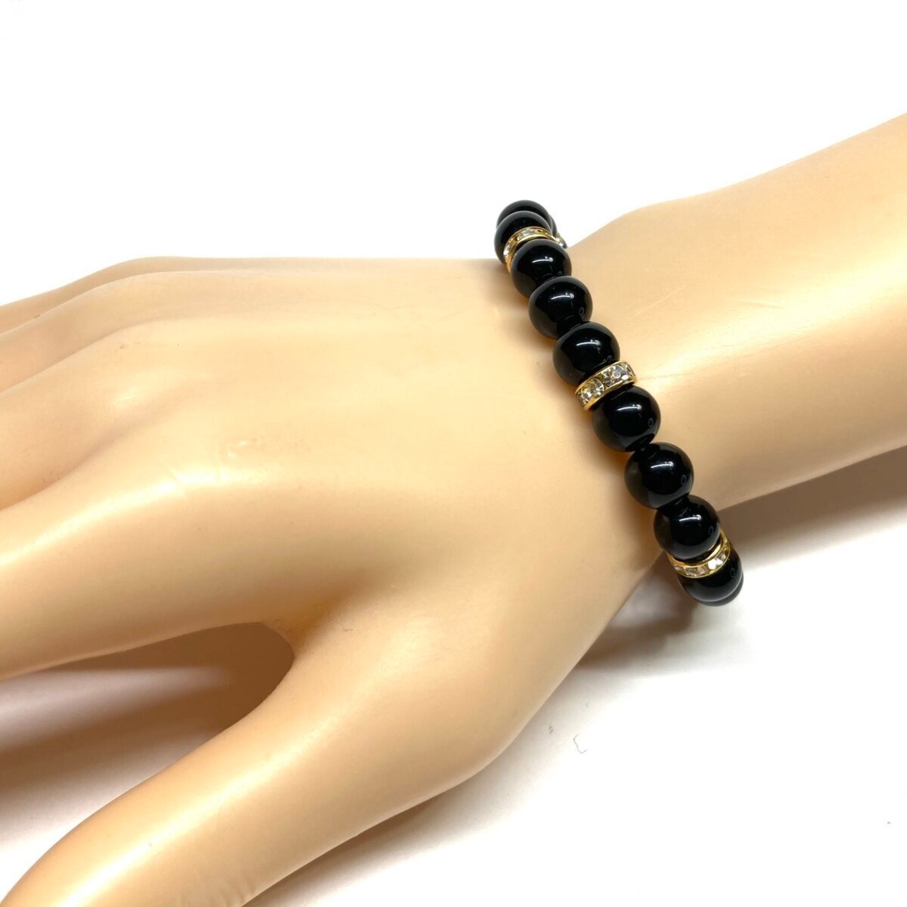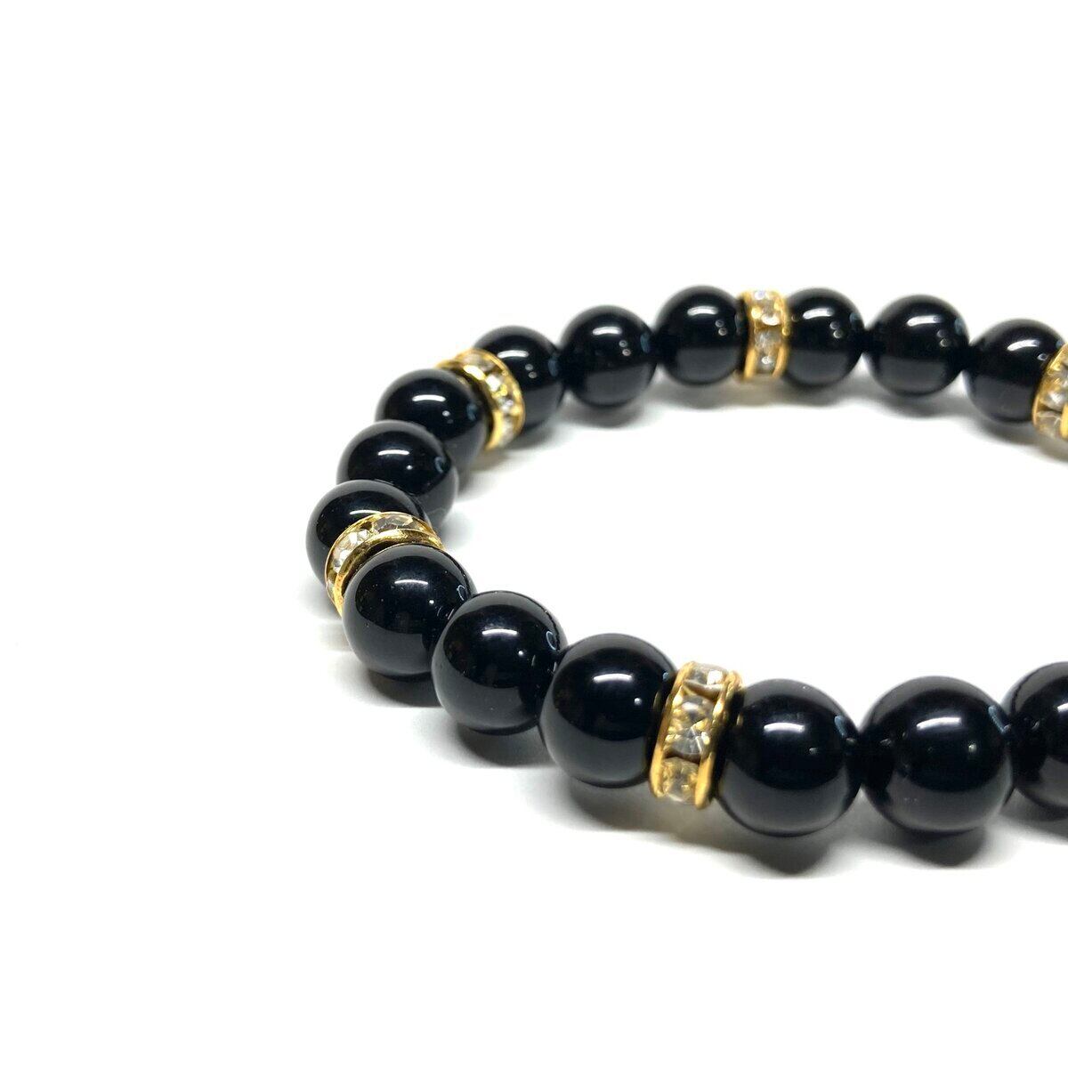 こちらは、8mm玉のモリオンを使ったパワーストーンブレスレットです。シンプルなデザインでどんなコーディネートにも合わせやすいデザインに仕上げています。サイズは内周約15cmです。気になる方は是非この機会にどうぞ。