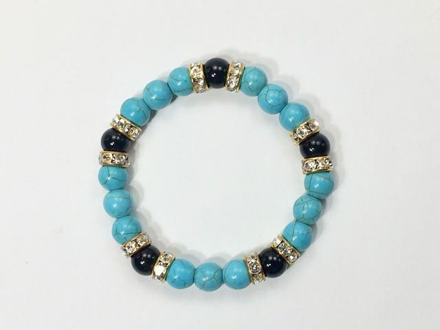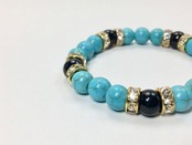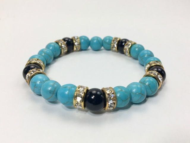 こちらは、8mm玉のターコイズとオニキスを使ったパワーストーンブレスレットです。シンプルなデザインでどんなコーディネートにも合わせやすいデザインに仕上げています。サイズは内周約14cmです。気になる方は是非この機会にどうぞ。