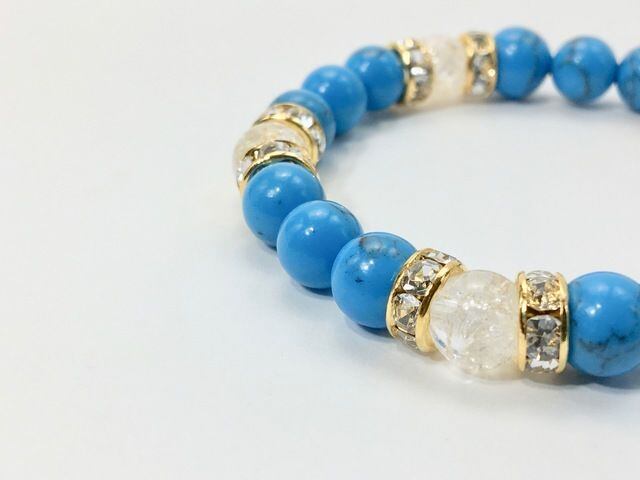 パワーストーン ブレスレット ターコイズ&クラック水晶 8mm(ゴールド)レディース 女性 数珠ブレス 開運 プレゼント ギフト