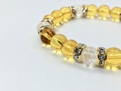 こちらは、8mm玉のシトリンとクラック水晶を使ったパワーストーンブレスレットです。シンプルなデザインでどんなコーディネートにも合わせやすいデザインに仕上げています。サイズは内周約15cmです。気になる方は是非この機会にどうぞ。