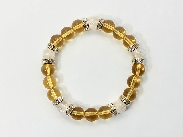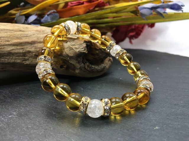 こちらは、8mm玉のアメジストとクラック水晶を使ったパワーストーンブレスレットです。シンプルなデザインでどんなコーディネートにも合わせやすいデザインに仕上げています。サイズは内周約15cmです。気になる方は是非この機会にどうぞ。