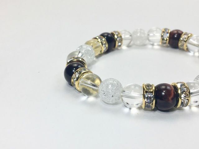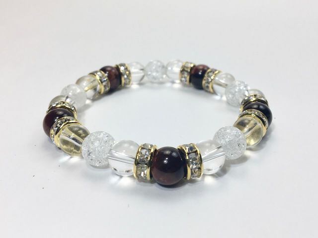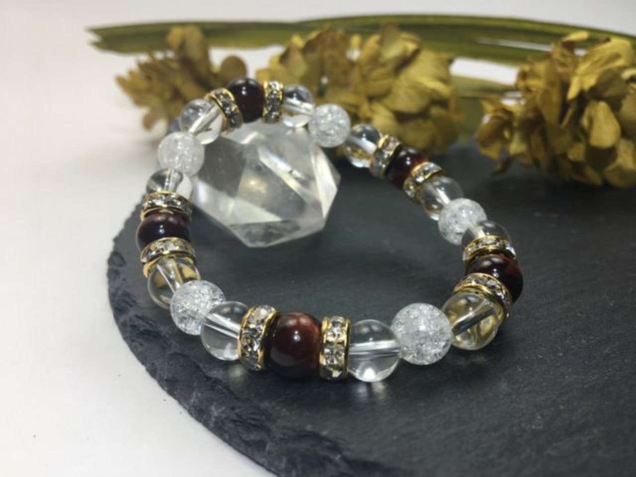 パワーストーン ブレスレット レッドタイガーアイ&水晶&クラック水晶 (ゴールド)レディース 女性 数珠ブレス 開運 プレゼント ギフト