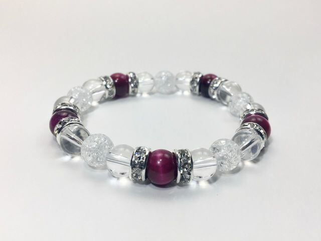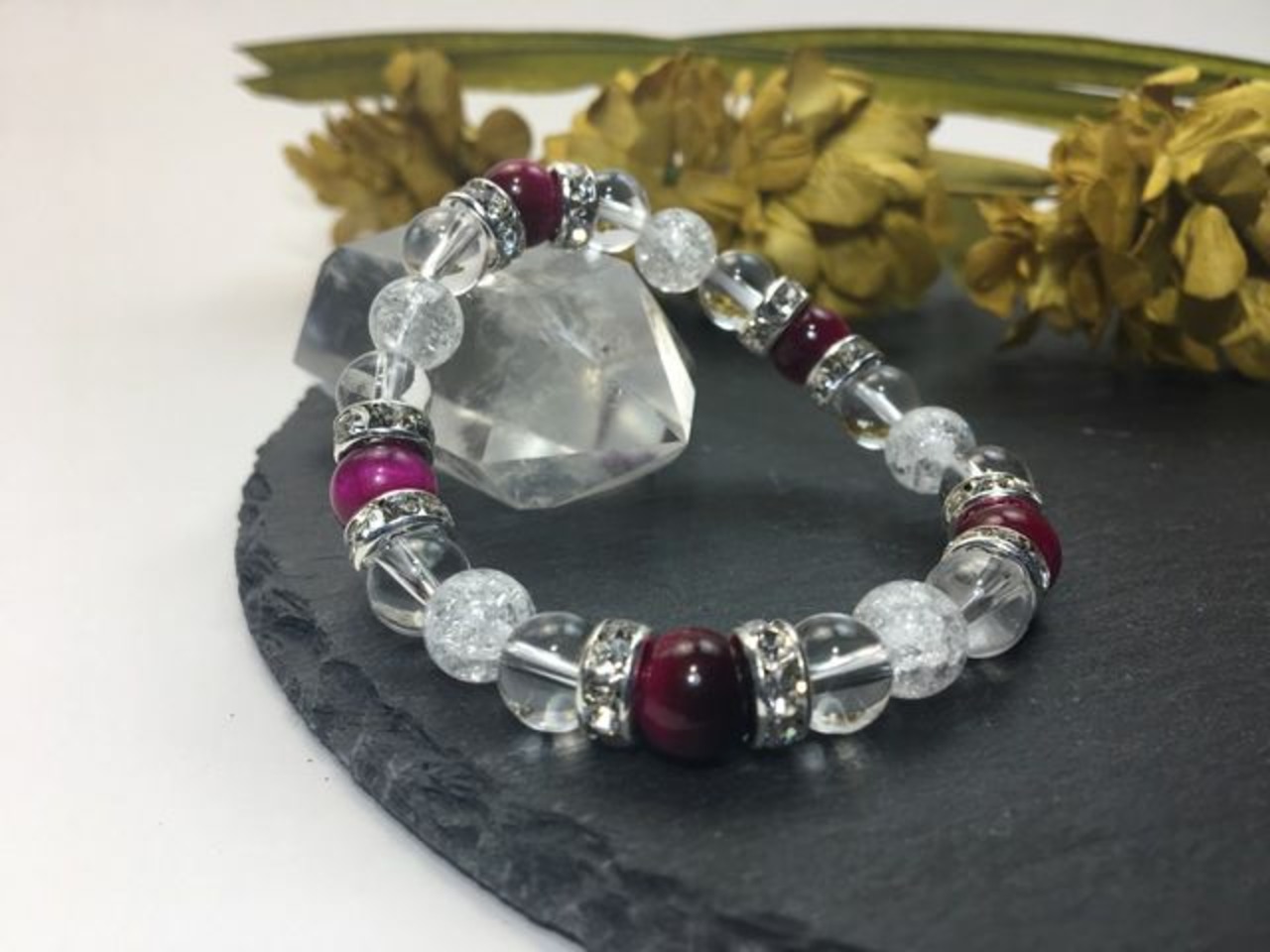 パワーストーン ブレスレット ピンクタイガーアイ&水晶&クラック水晶 (シルバー)レディース 女性 数珠ブレス 開運 プレゼント ギフト