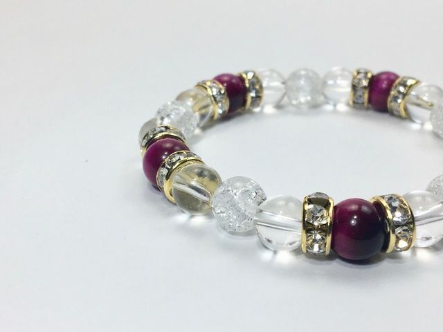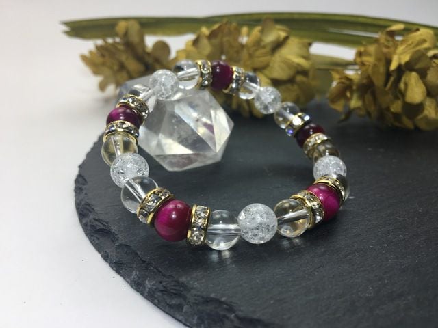 パワーストーン ブレスレット ピンクタイガーアイ&水晶&クラック水晶 (ゴールド)レディース 女性 数珠ブレス 開運 プレゼント ギフト