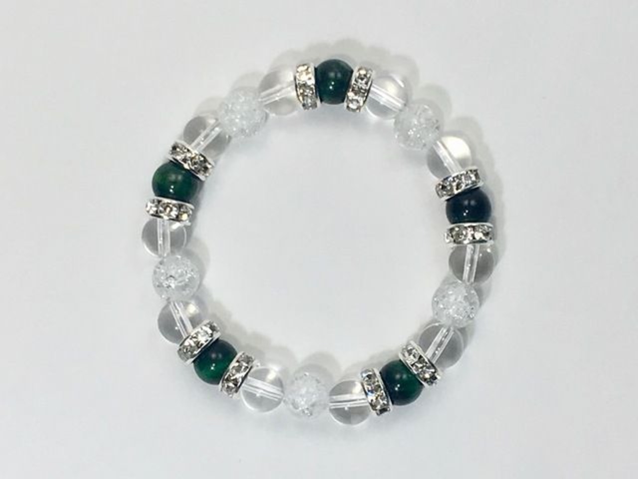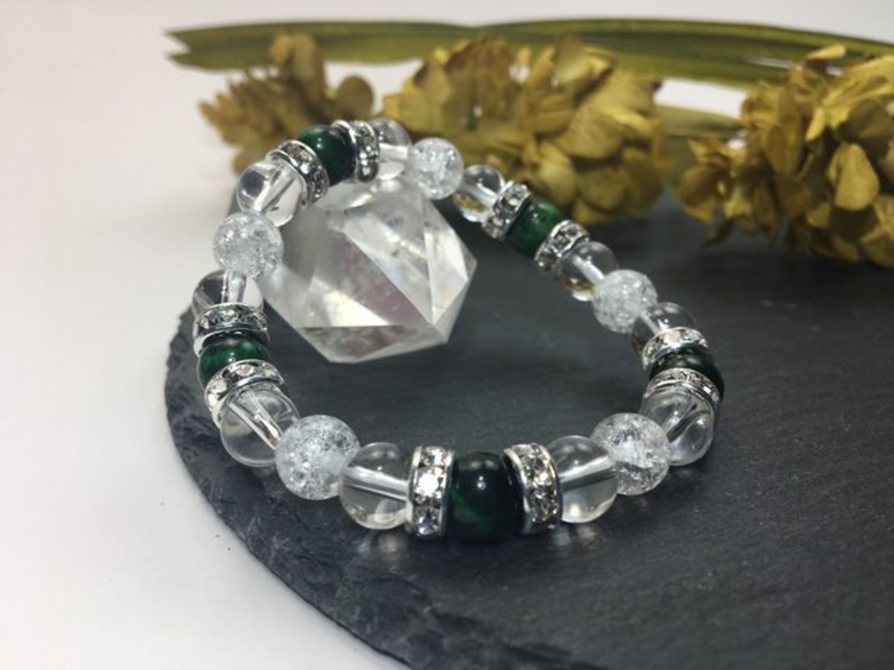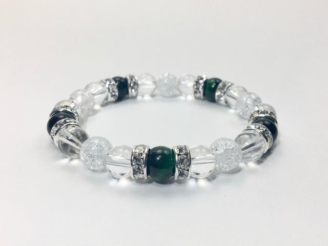 パワーストーン ブレスレット グリーンタイガーアイ&水晶&クラック水晶 (シルバー)レディース 女性 数珠ブレス 開運 プレゼント ギフト