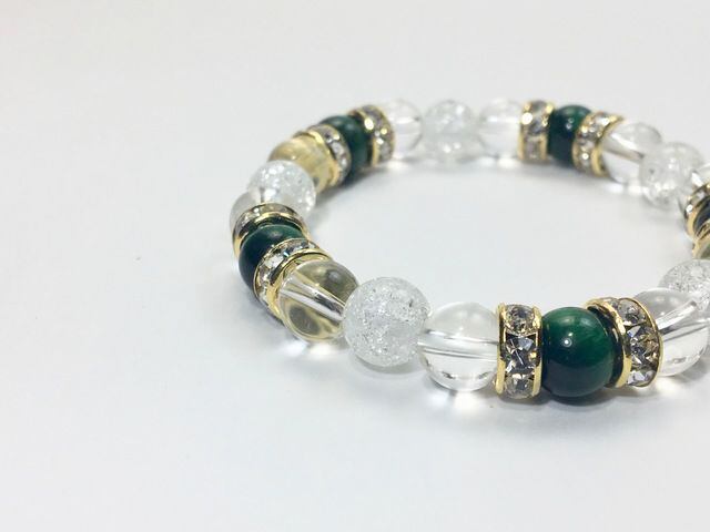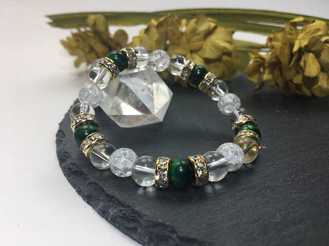 パワーストーン ブレスレット グリーンタイガーアイ&水晶&クラック水晶 (ゴールド)レディース 女性 数珠ブレス 開運 プレゼント ギフト
