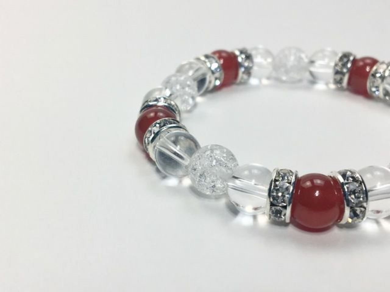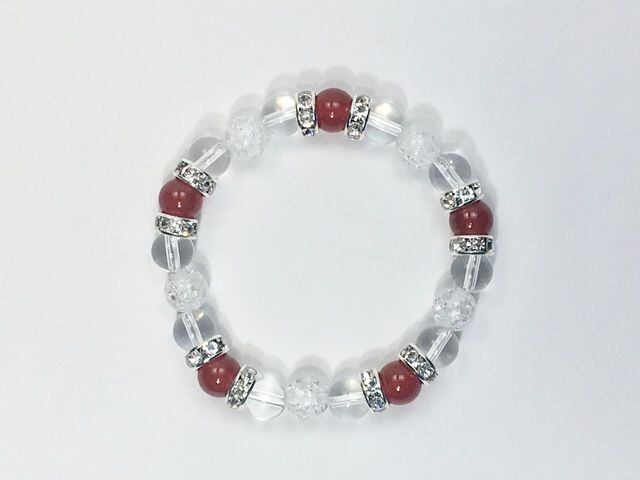 パワーストーン ブレスレット 赤瑪瑙&水晶&クラック水晶 天然石 (シルバー)レディース 女性 数珠ブレス 開運 プレゼント ギフト