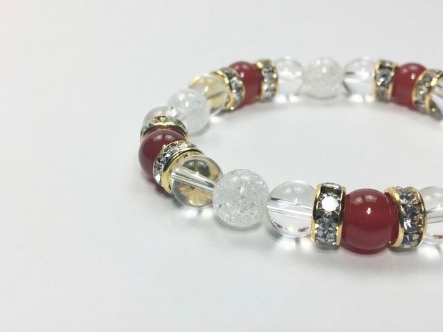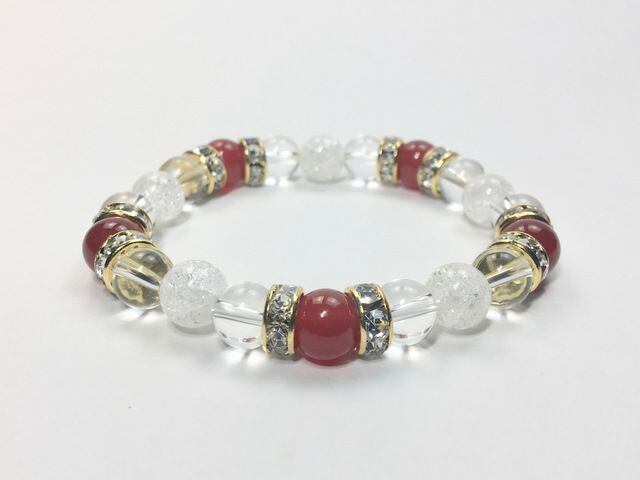 パワーストーン ブレスレット 赤瑪瑙&水晶&クラック水晶 (ゴールド)レディース 女性 数珠ブレス 開運 プレゼント ギフト