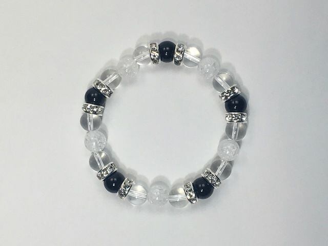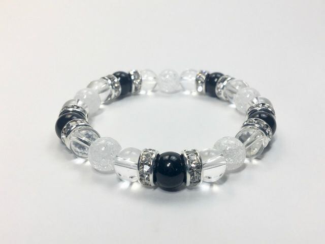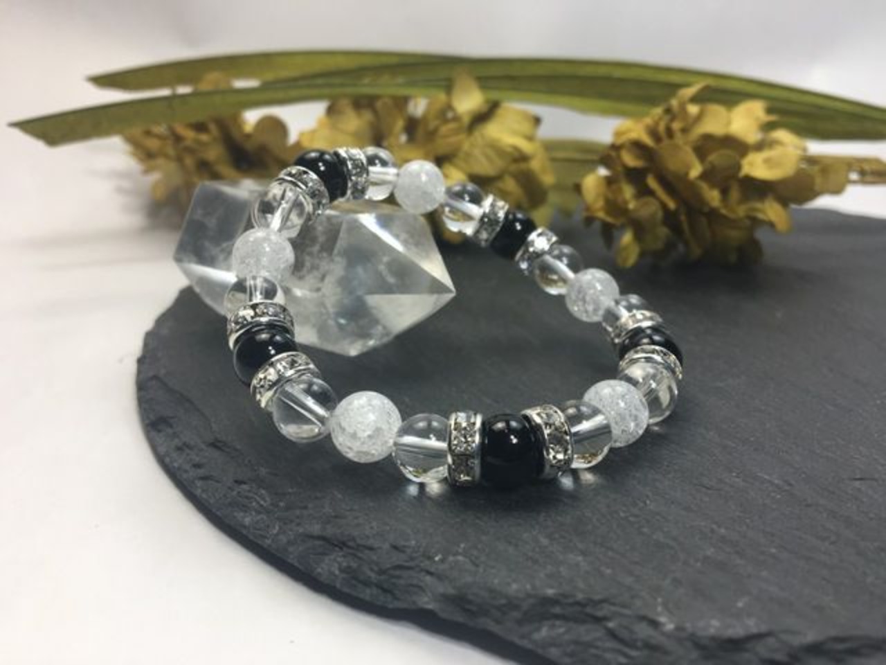 パワーストーン ブレスレット オニキス&水晶&クラック水晶 (シルバー)レディース 女性 数珠ブレス 開運 プレゼント ギフト