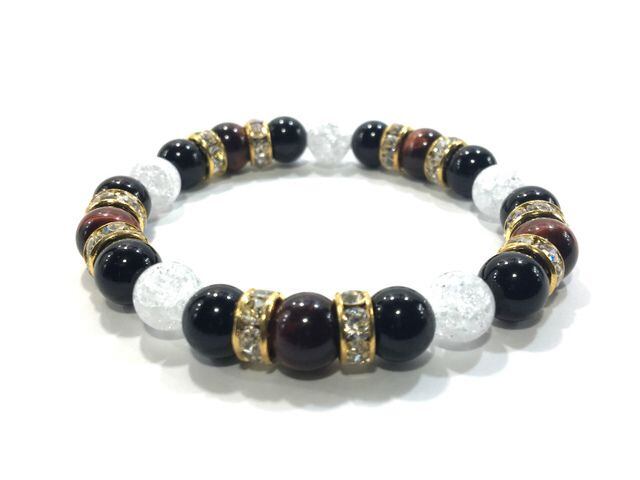 パワーストーン ブレスレット レッドタイガーアイ&オニキス&クラック水晶 (ゴールド)レディース 女性 数珠ブレス 開運 プレゼント ギフト
