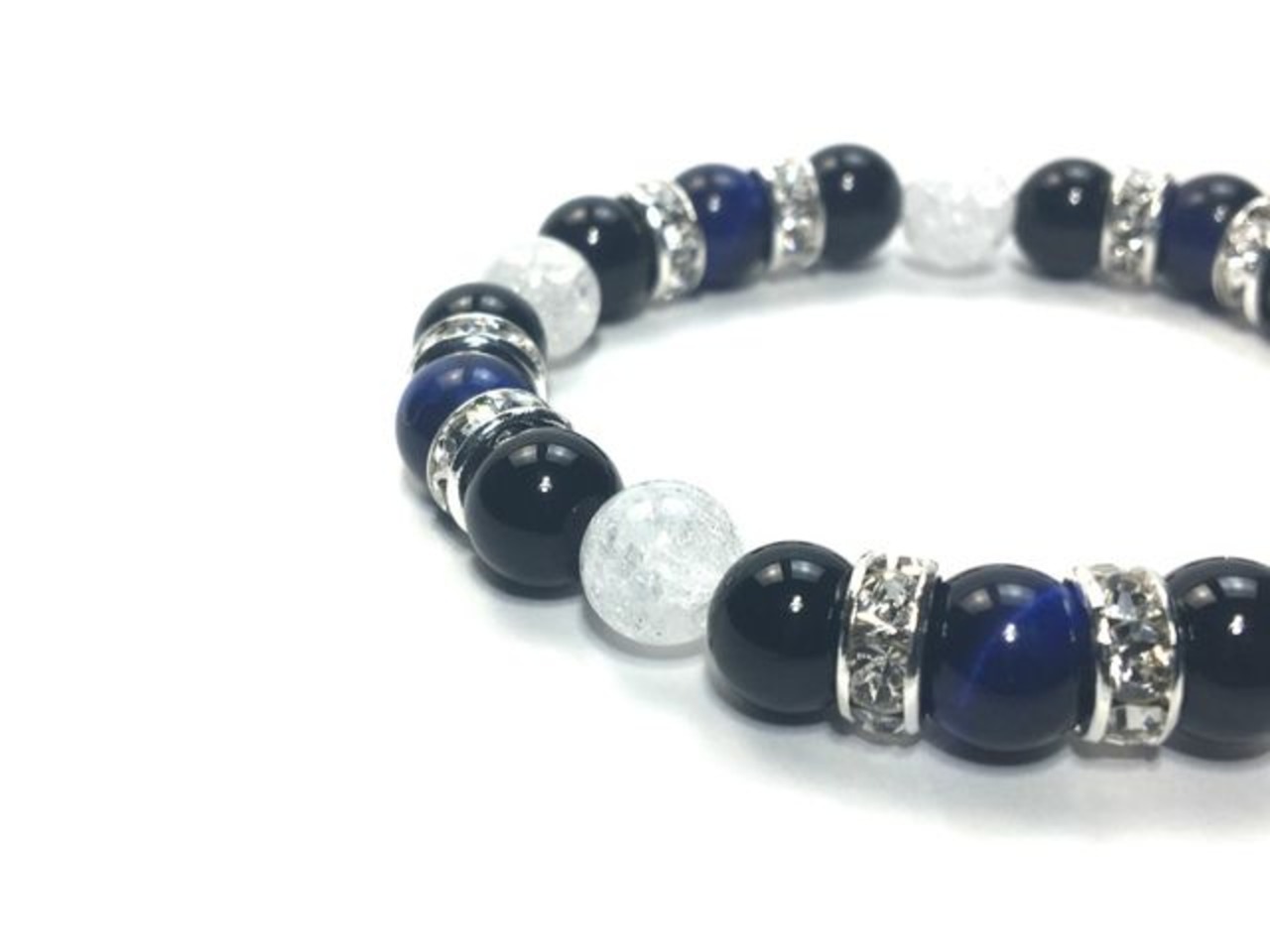 パワーストーン ブレスレット ブルータイガーアイ&オニキス&クラック水晶 (シルバー)レディース 女性 数珠ブレス 開運 プレゼント ギフト