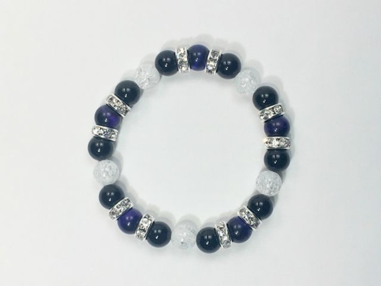 こちらは、8mm玉のパープルタイガーアイとオニキス、クラック水晶を組み合わせたパワーストーンブレスレットです。今回は五芒星デザインで石を配置しております。五芒星とは、陰陽道の基本概念となった陰陽五行説、木・火・土・金・水の5つの元素の働きの相克を表したものであり、五芒星は厄除・開運を願うデザインと重宝されているデザインです。サイズは内周約15cmです。気になる方は是非この機会にどうぞ。