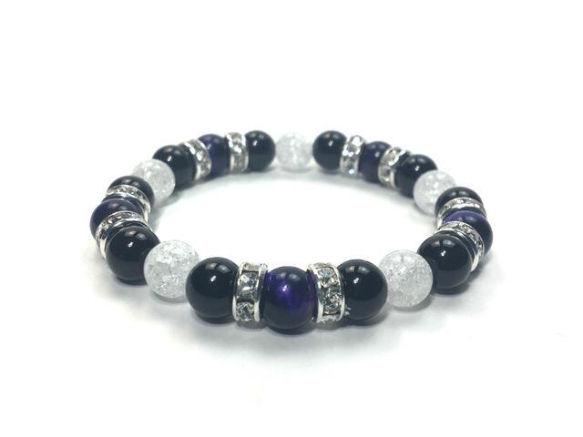 パワーストーン ブレスレット パープルタイガーアイ&オニキス&クラック水晶 (シルバー)レディース 女性 数珠ブレス 開運 プレゼント ギフト