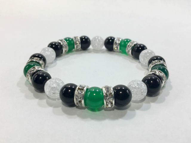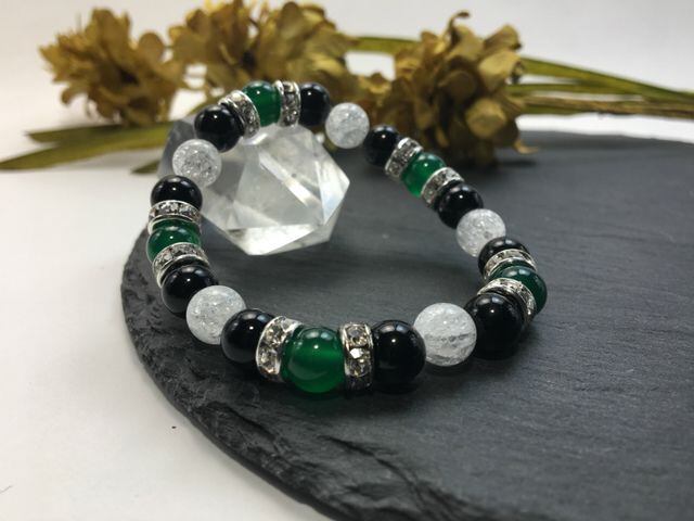 パワーストーン ブレスレット 緑瑪瑙&オニキス&クラック水晶 天然石 (シルバー)レディース 女性 数珠ブレス 開運 プレゼント ギフト