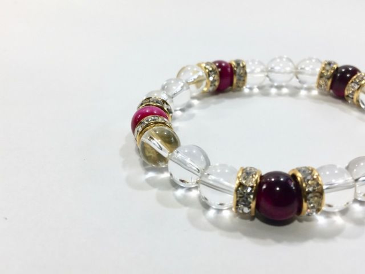 こちらは、8mm玉のピンクタイガーアイと水晶を組み合わせたパワーストーンブレスレットです。今回は五芒星デザインで石を配置しております。五芒星とは、陰陽道の基本概念となった陰陽五行説、木・火・土・金・水の5つの元素の働きの相克を表したものであり、五芒星は厄除・開運を願うデザインと重宝されているデザインです。サイズは内周約15cmです。気になる方は是非この機会にどうぞ。