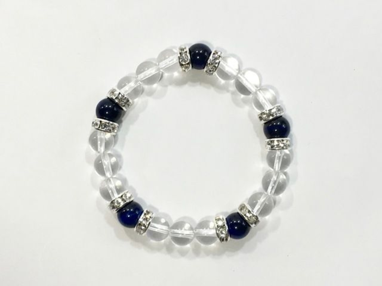 こちらは、8mm玉のブルータイガーアイと水晶を組み合わせたパワーストーンブレスレットです。今回は五芒星デザインで石を配置しております。五芒星とは、陰陽道の基本概念となった陰陽五行説、木・火・土・金・水の5つの元素の働きの相克を表したものであり、五芒星は厄除・開運を願うデザインと重宝されているデザインです。サイズは内周約15cmです。気になる方は是非この機会にどうぞ。