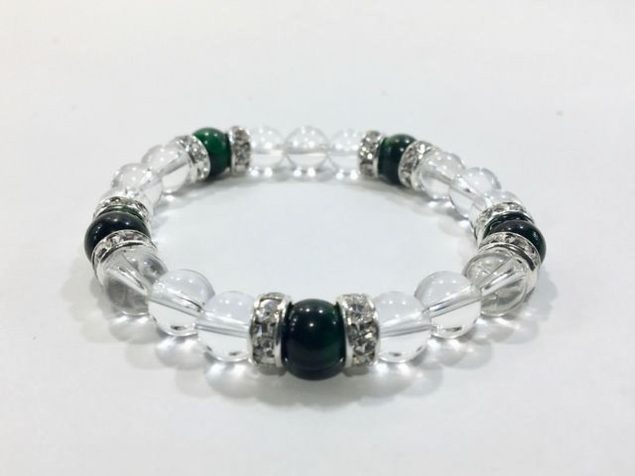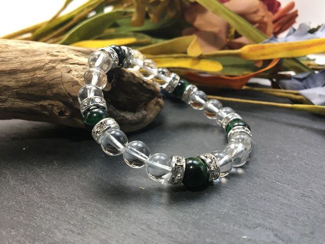 パワーストーン ブレスレット グリーンタイガーアイ&水晶 (シルバー)レディース 女性 数珠ブレス 開運 プレゼント ギフト