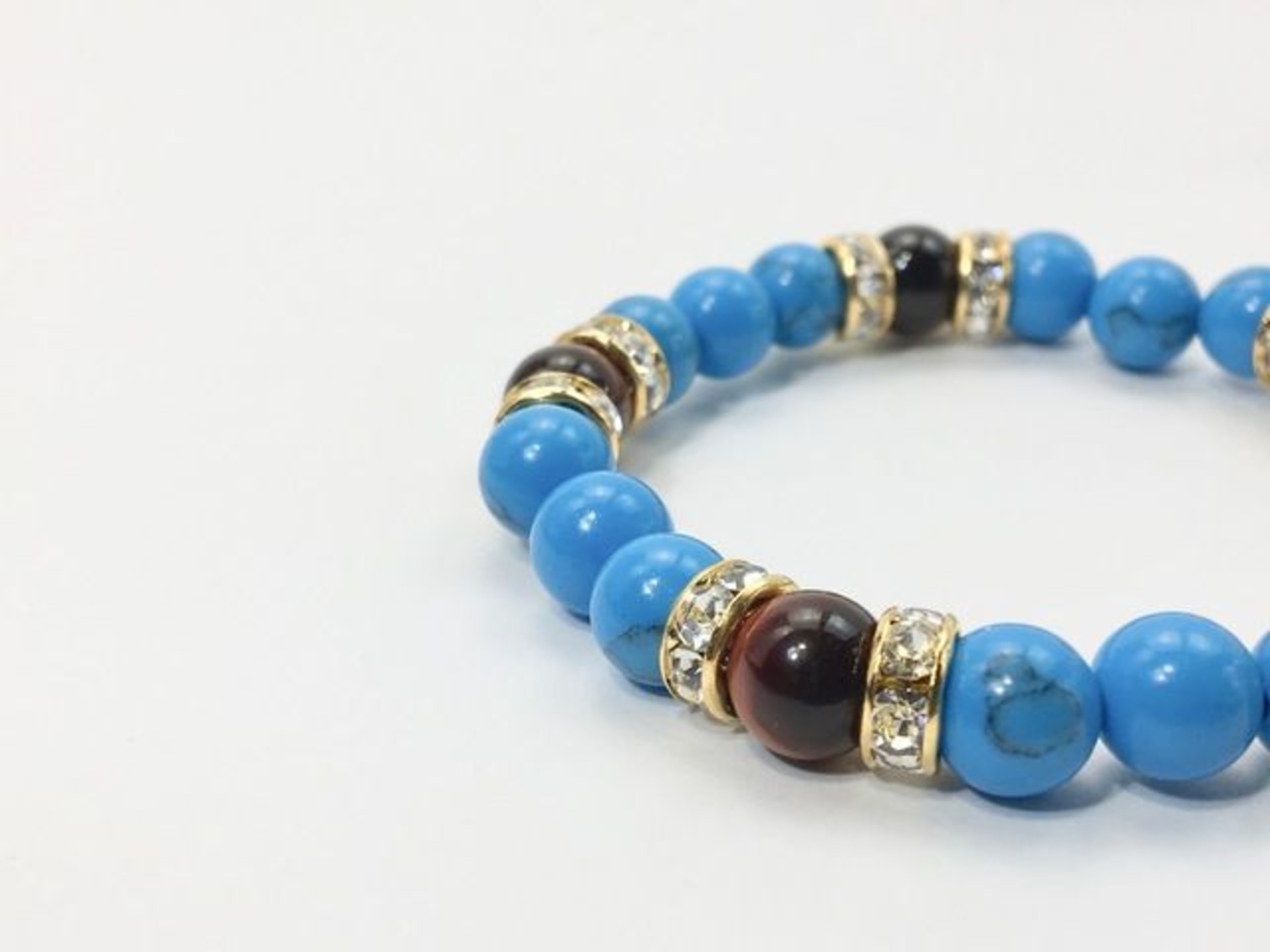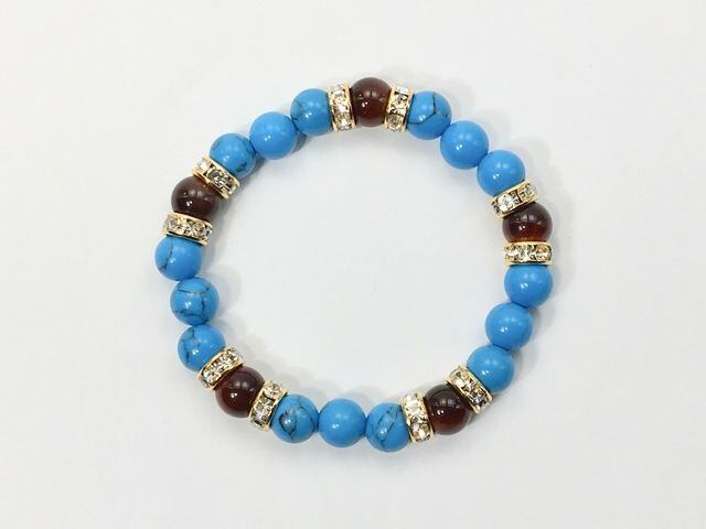 こちらは、8mm玉のターコイズとレッドタイガーアイを使ったパワーストーンブレスレットです。シンプルなデザインでどんなコーディネートにも合わせやすいデザインに仕上げています。サイズは内径約15cmです。気になる方は是非この機会にどうぞ。