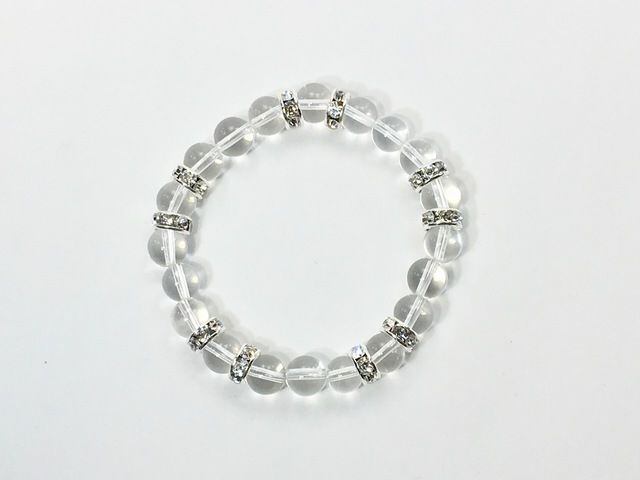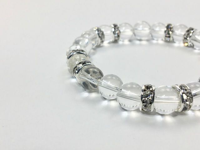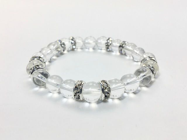 こちらは、8mm玉の水晶を使ったパワーストーンブレスレットです。シンプルなデザインでどんなコーディネートにも合わせやすいデザインに仕上げています。サイズは内周約15cmです。気になる方は是非この機会にどうぞ。