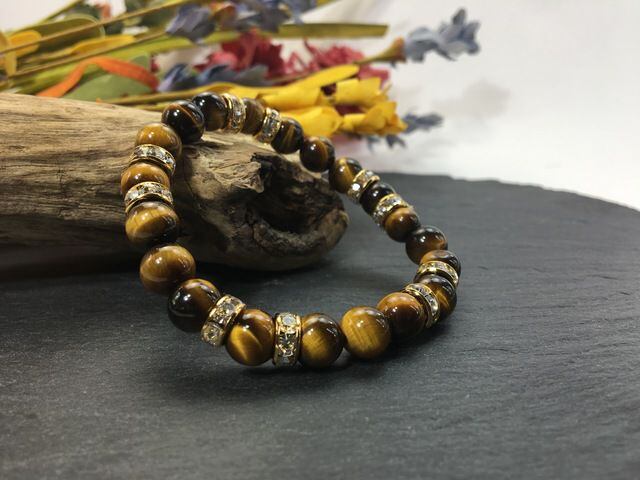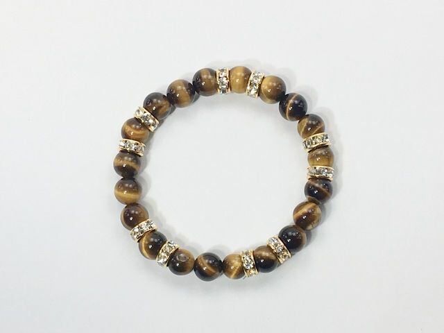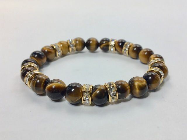 こちらは、8mm玉のタイガーアイを使ったパワーストーンブレスレットです。シンプルなデザインでどんなコーディネートにも合わせやすいデザインに仕上げています。サイズは内周約15cmです。気になる方は是非この機会にどうぞ。